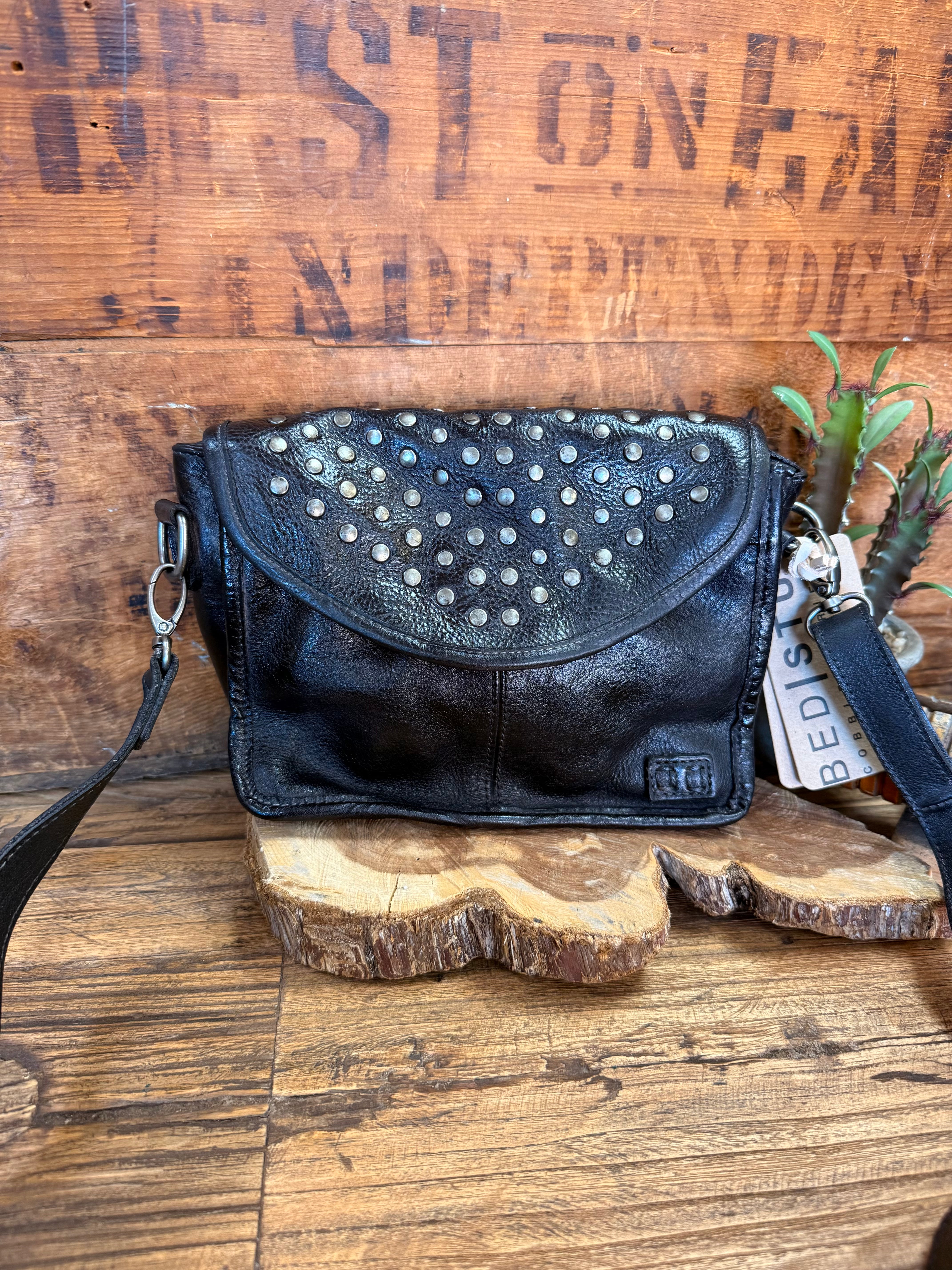 Occurrence is the compact crossbody that packs a punch. Adorned with bold studs on the flap, this versatile bag can be worn as a crossbody or transformed into a clutch by removing the strap. Small but mighty, Occurrence offers just enough space for your essentials while making a statement with its edgy yet elegant design. Perfect for day or night, it's the ultimate grab-and-go accessory.
