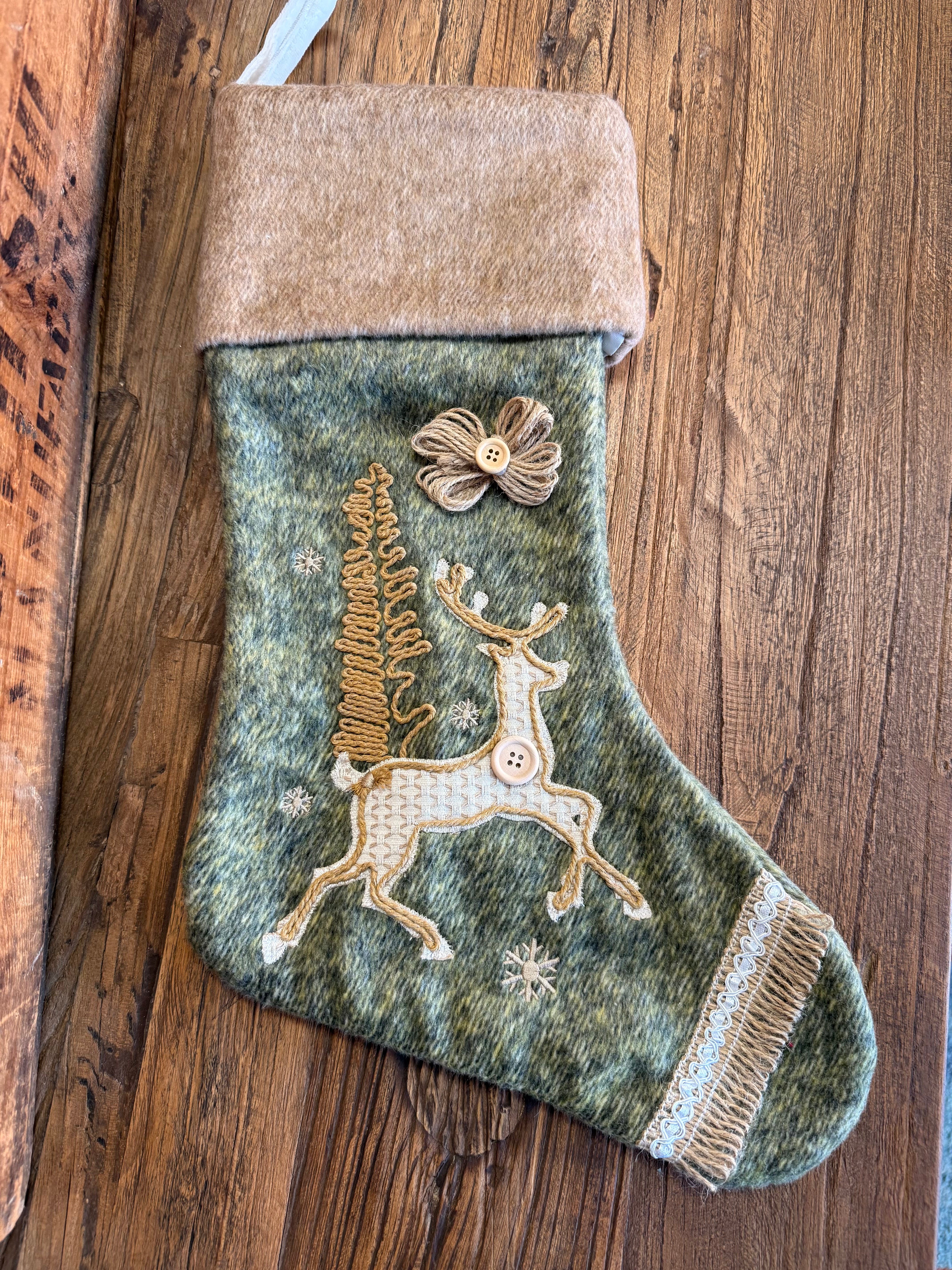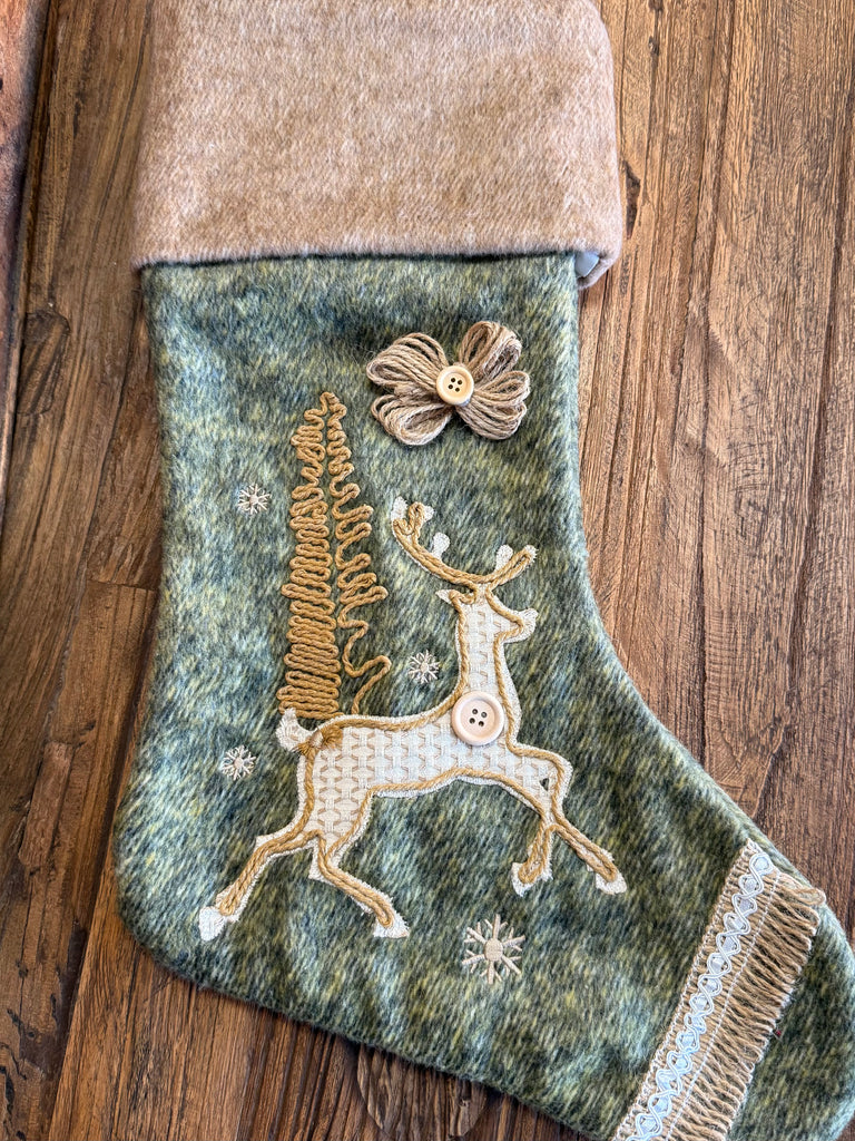 Reindeer Fabric Christmas Stocking