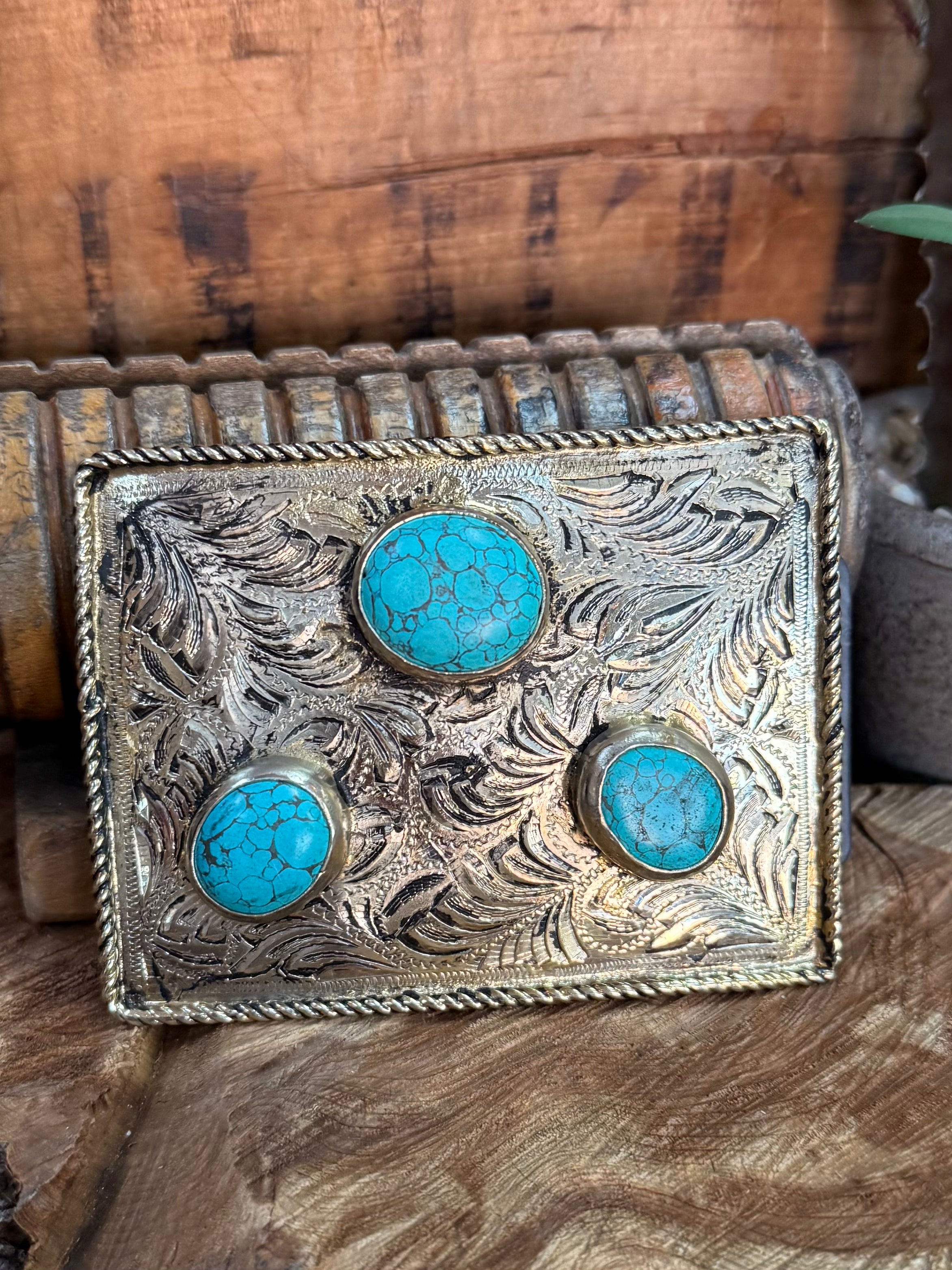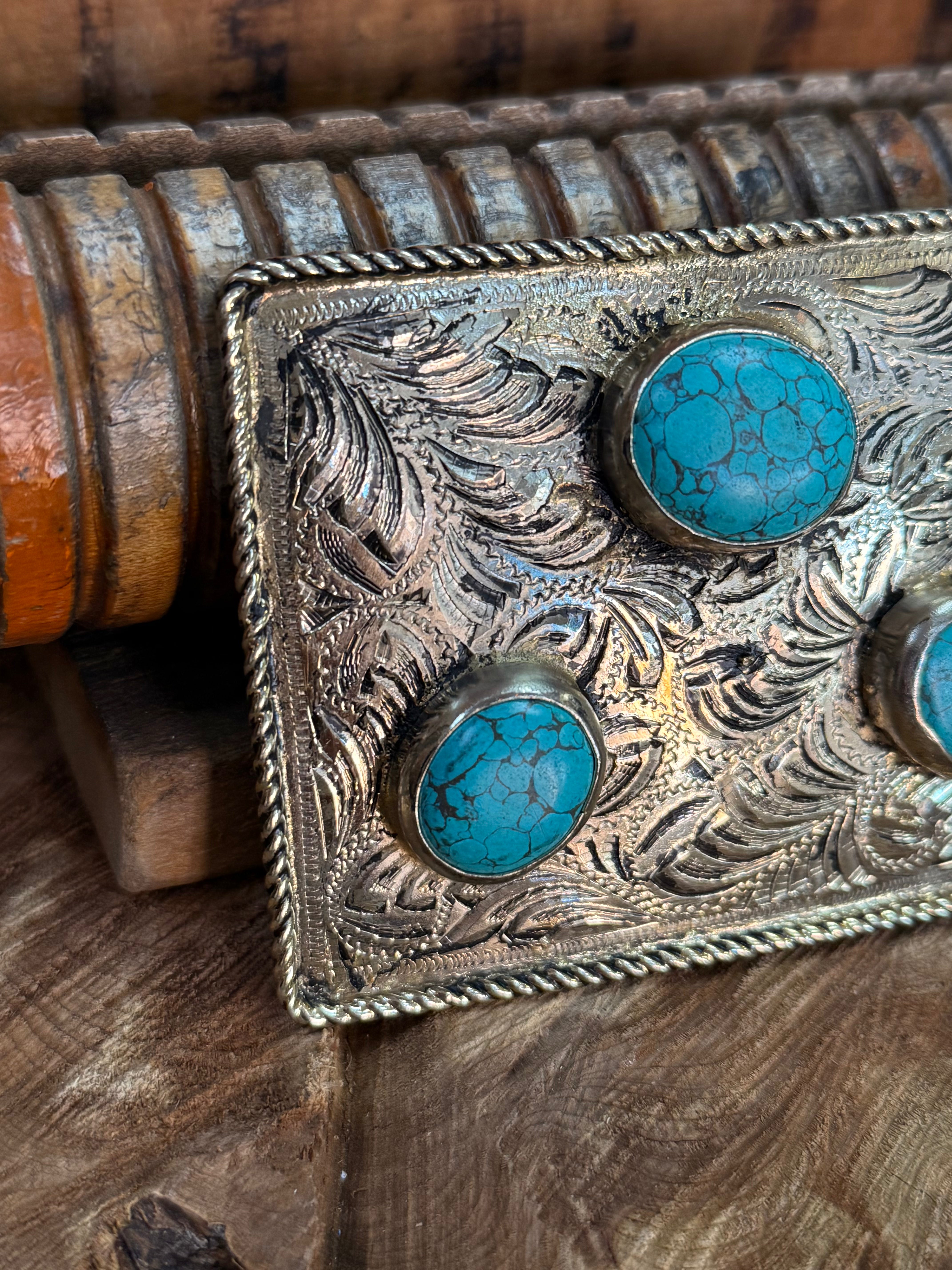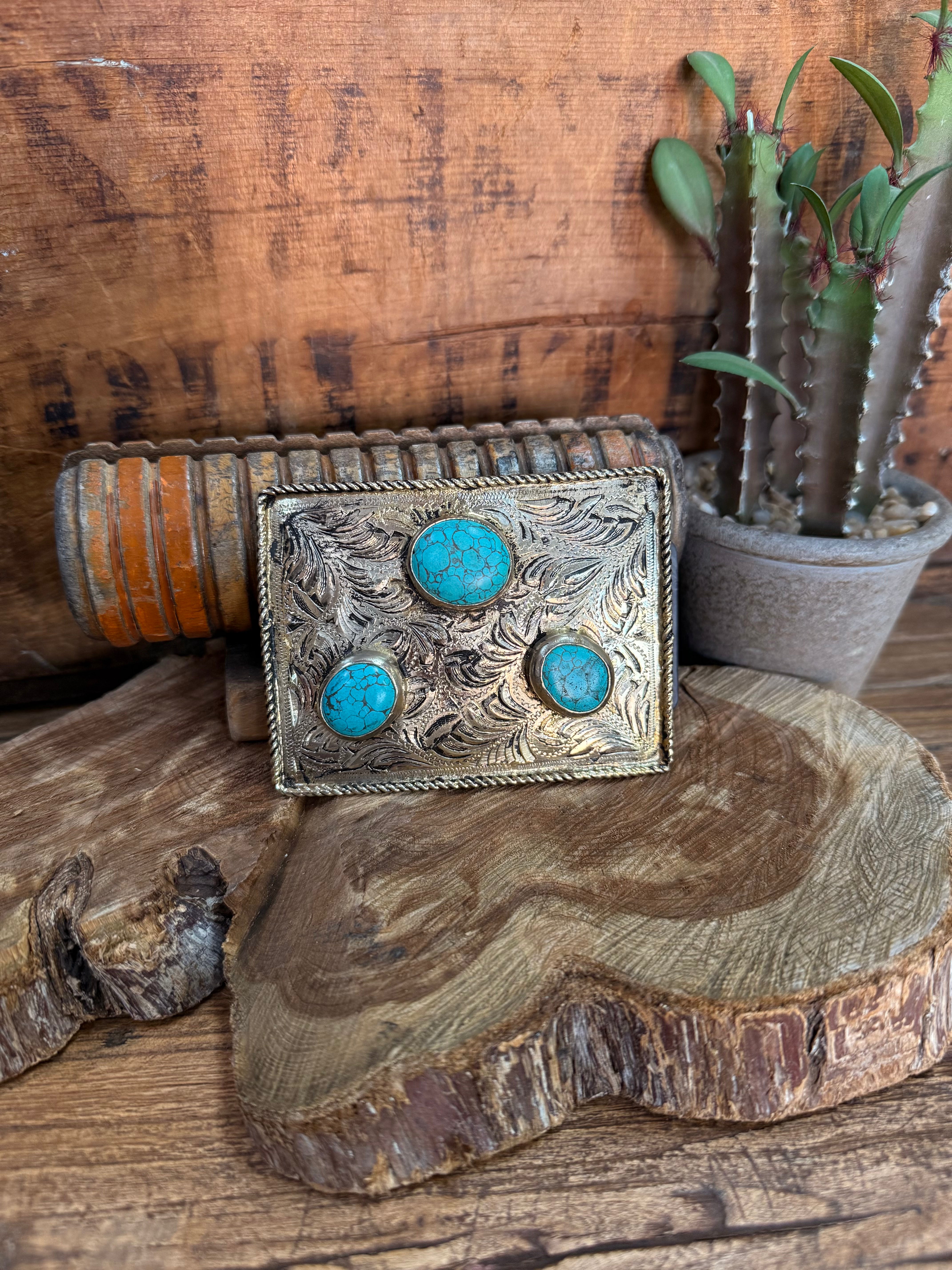 Triple Turquoise Stone Belt Buckle
