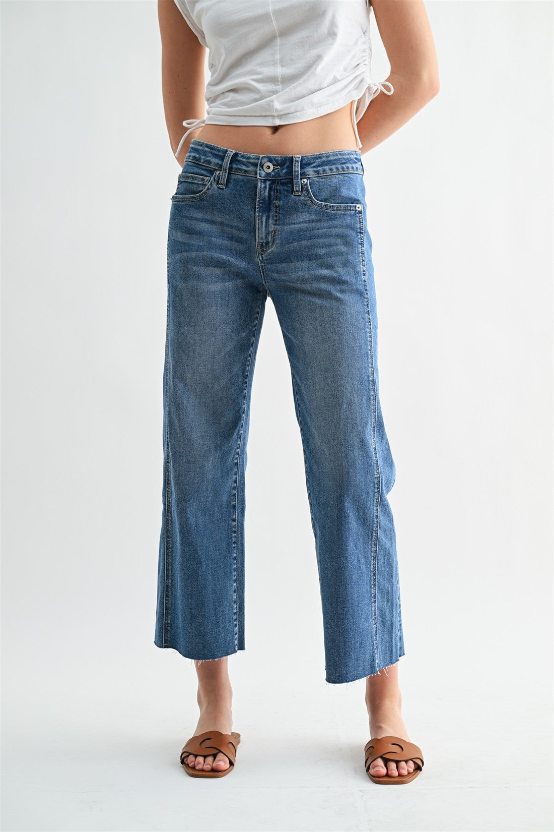 MID-RISE STRAIGHT TUMMY TUCK CROP LOOSE FIT RAW HEM 92% COTTON, 5% POLY, 3% SPAN FRONT RISE: 9 1/2 INSEAM: 27