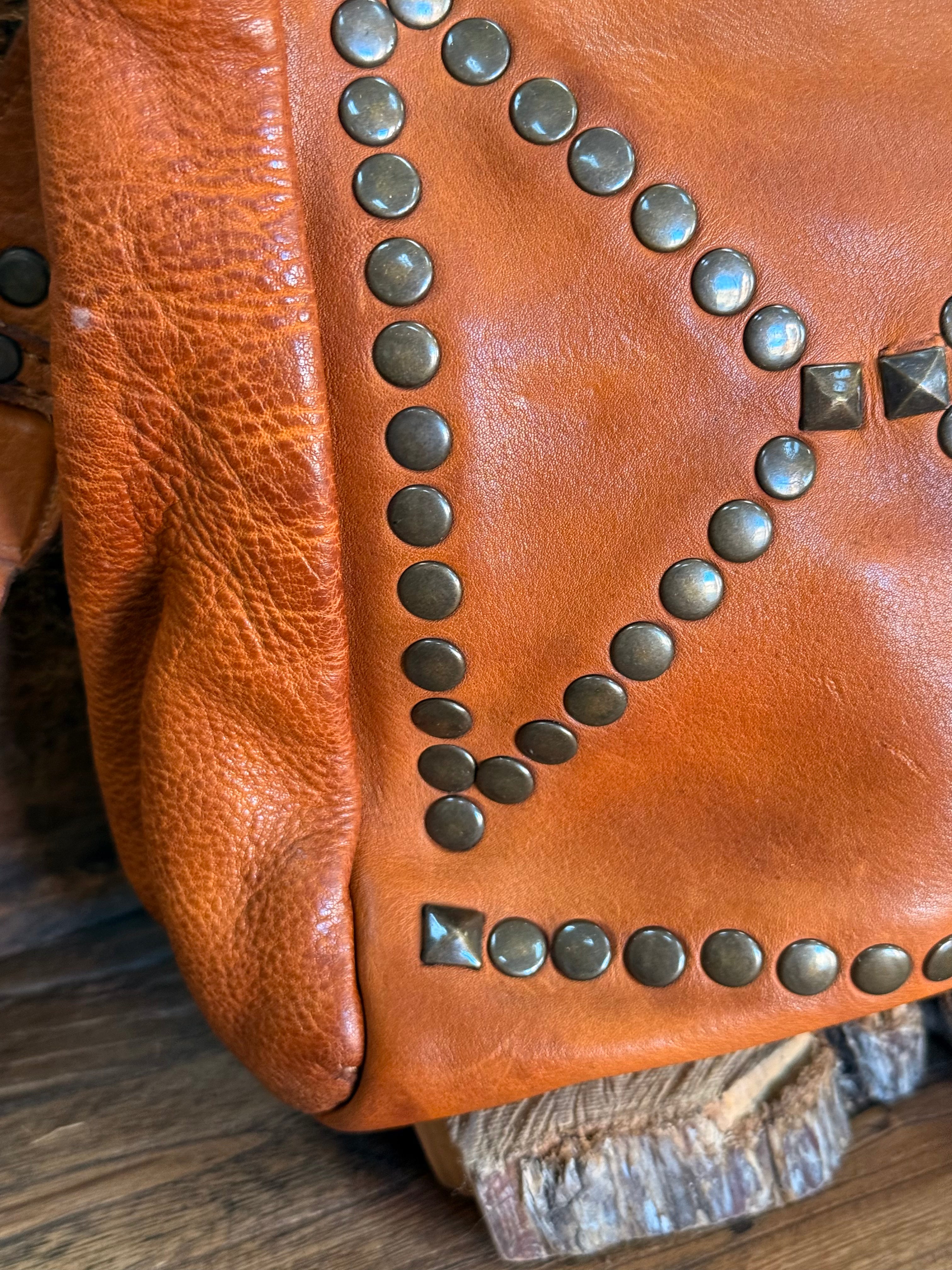 Enhanced with decorative rivets, adding a touch of rugged elegance.