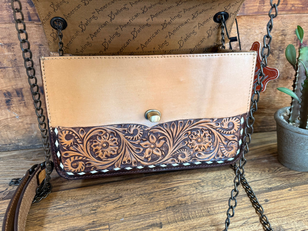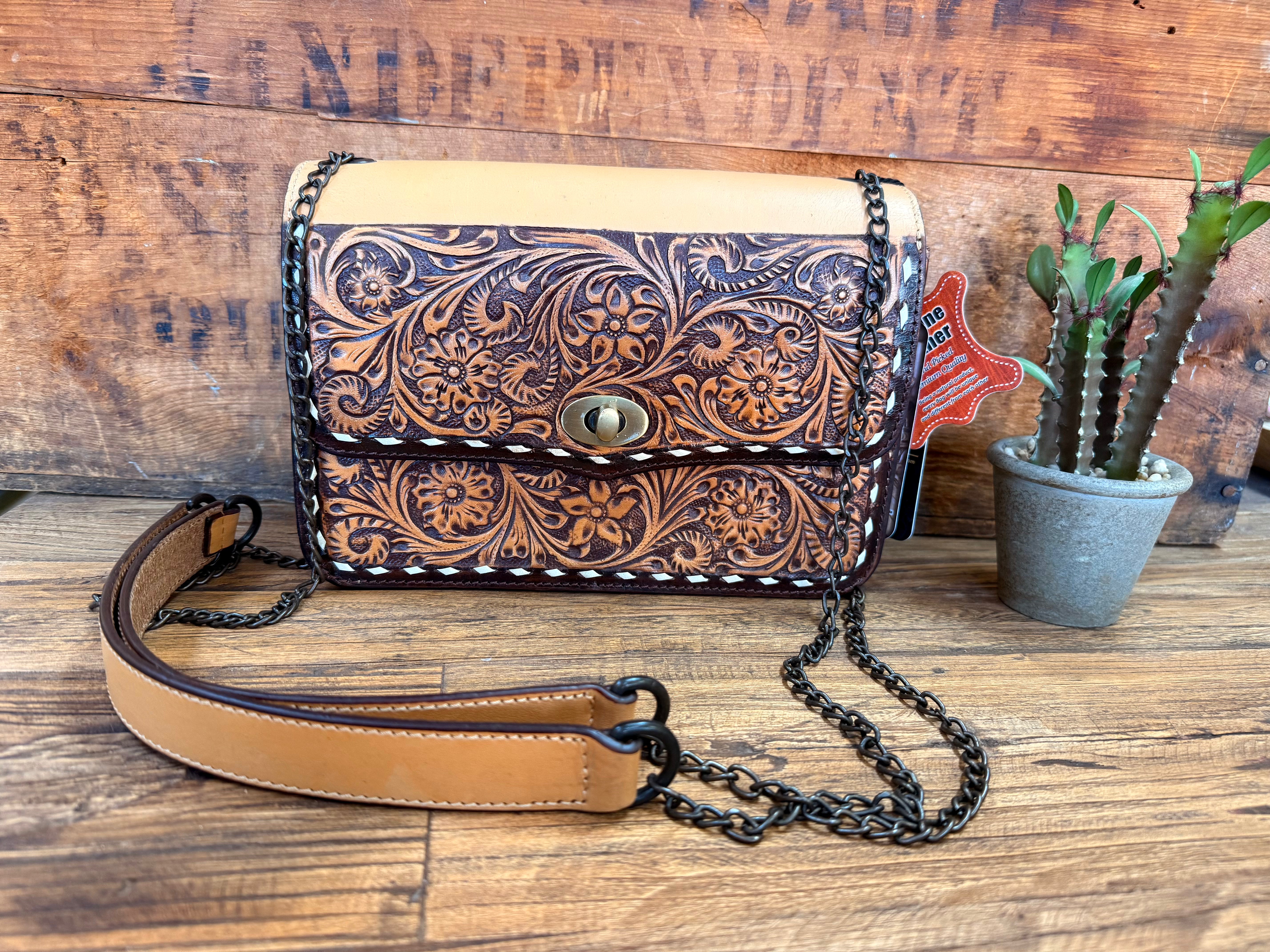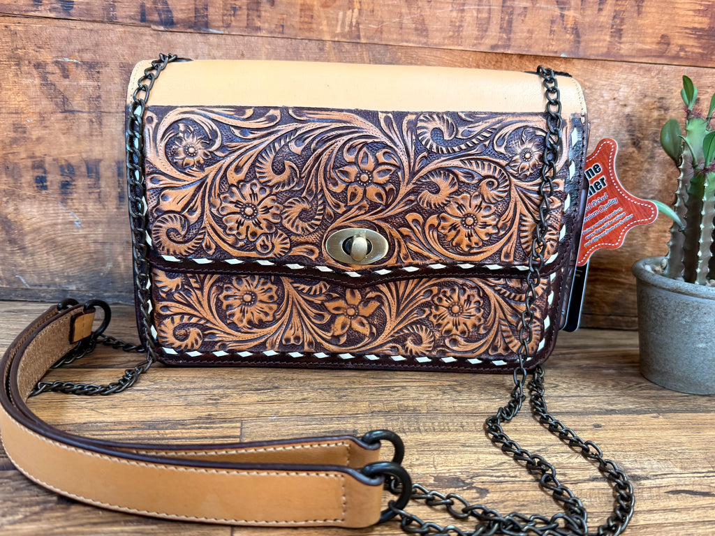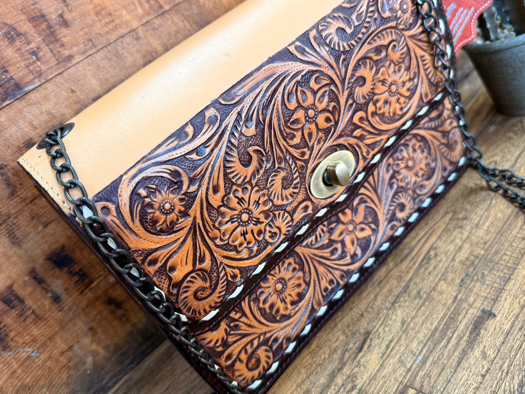 Tooled Flap Chain Handled Purse