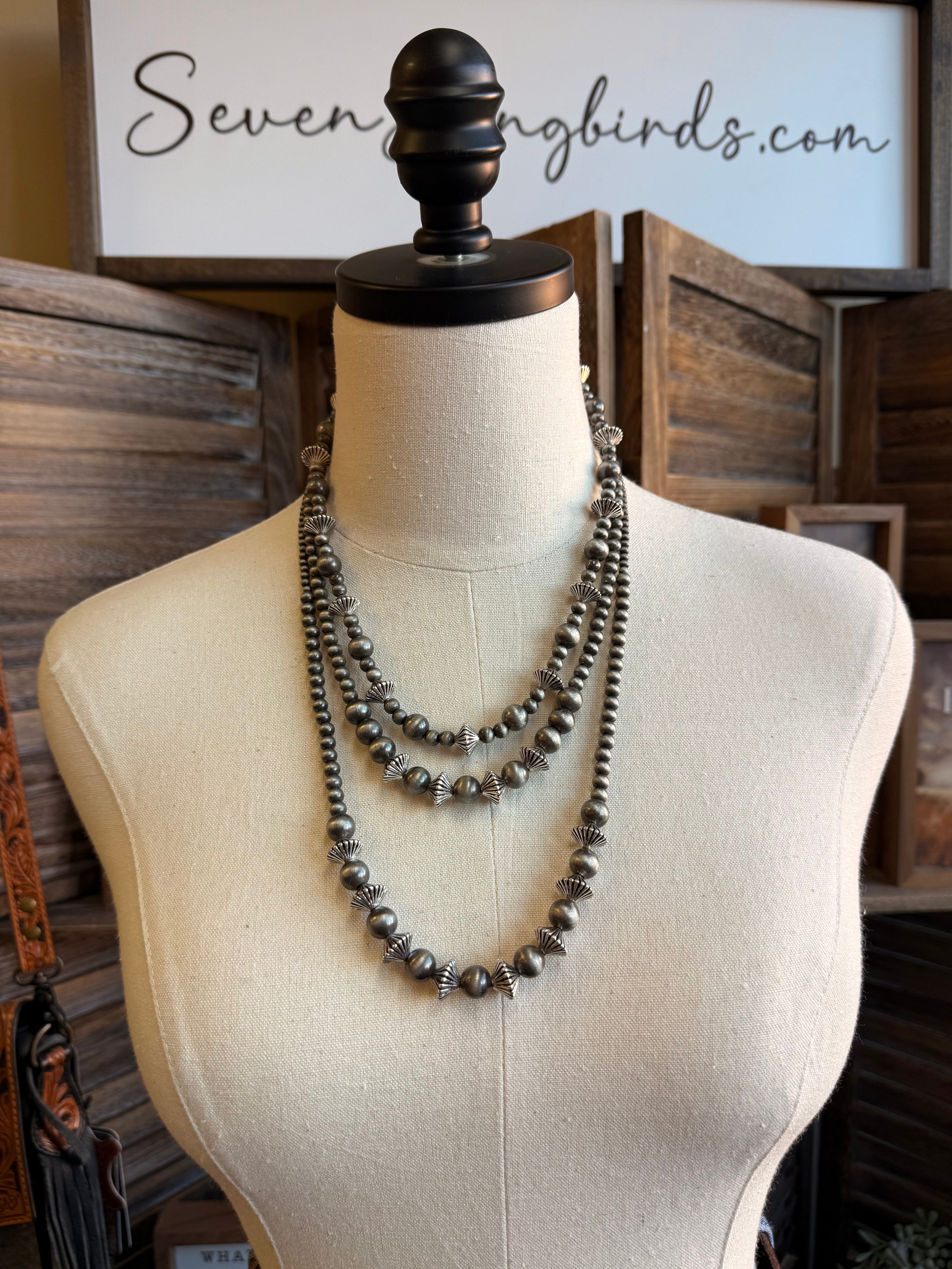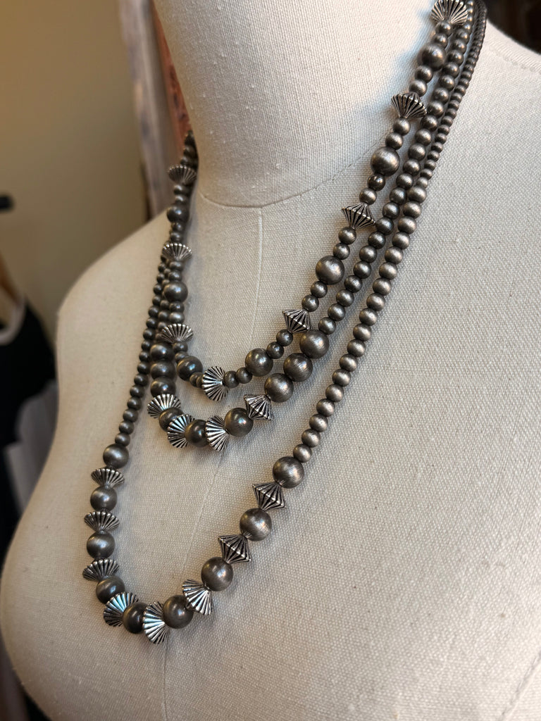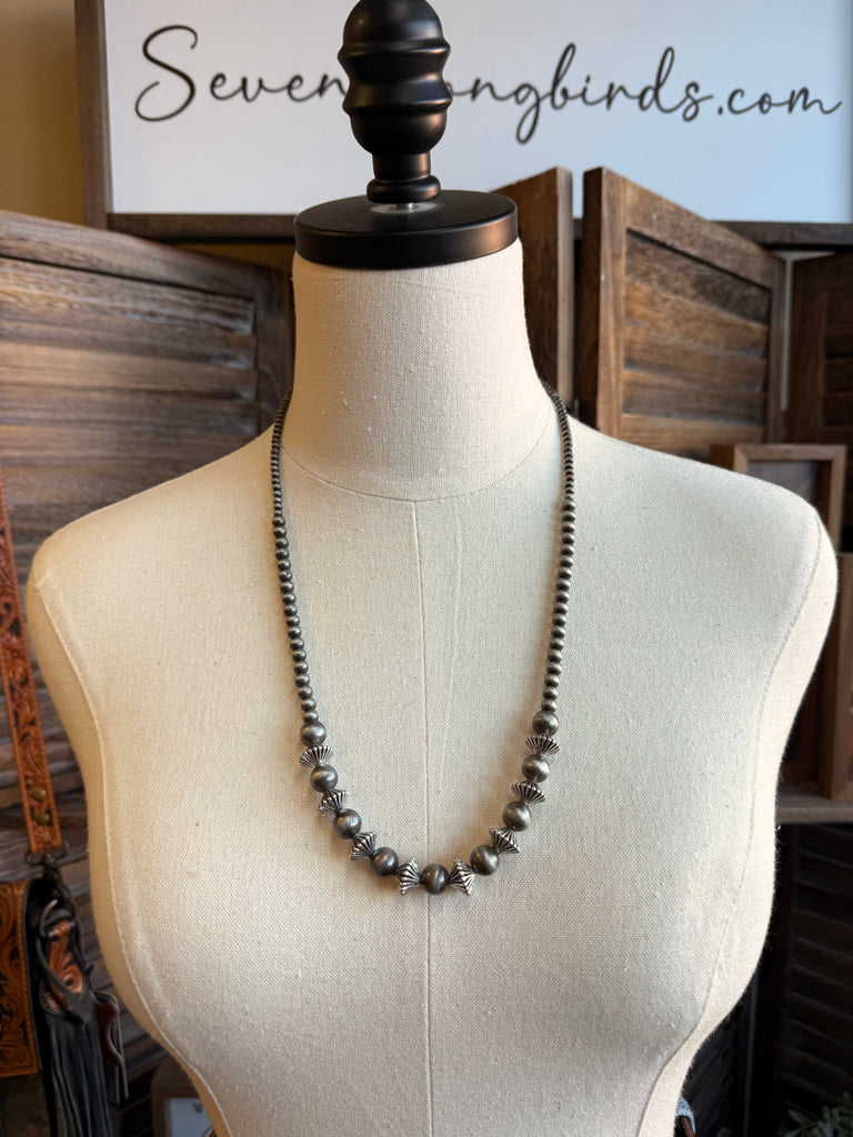 Graduated Rondelle Silver Pearl Necklace