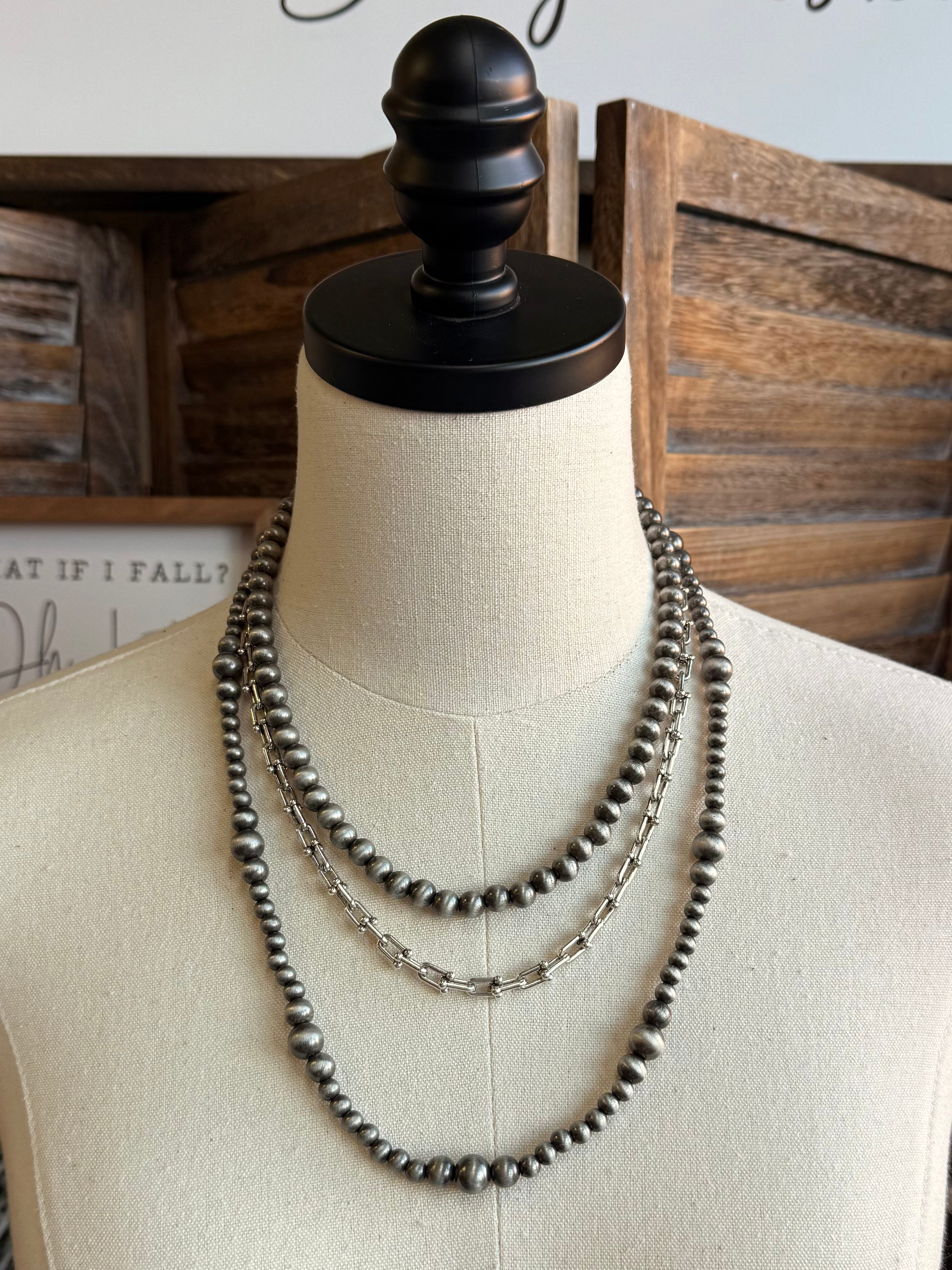 Triple Pearl Stack w/ Chain | Silver or Copper