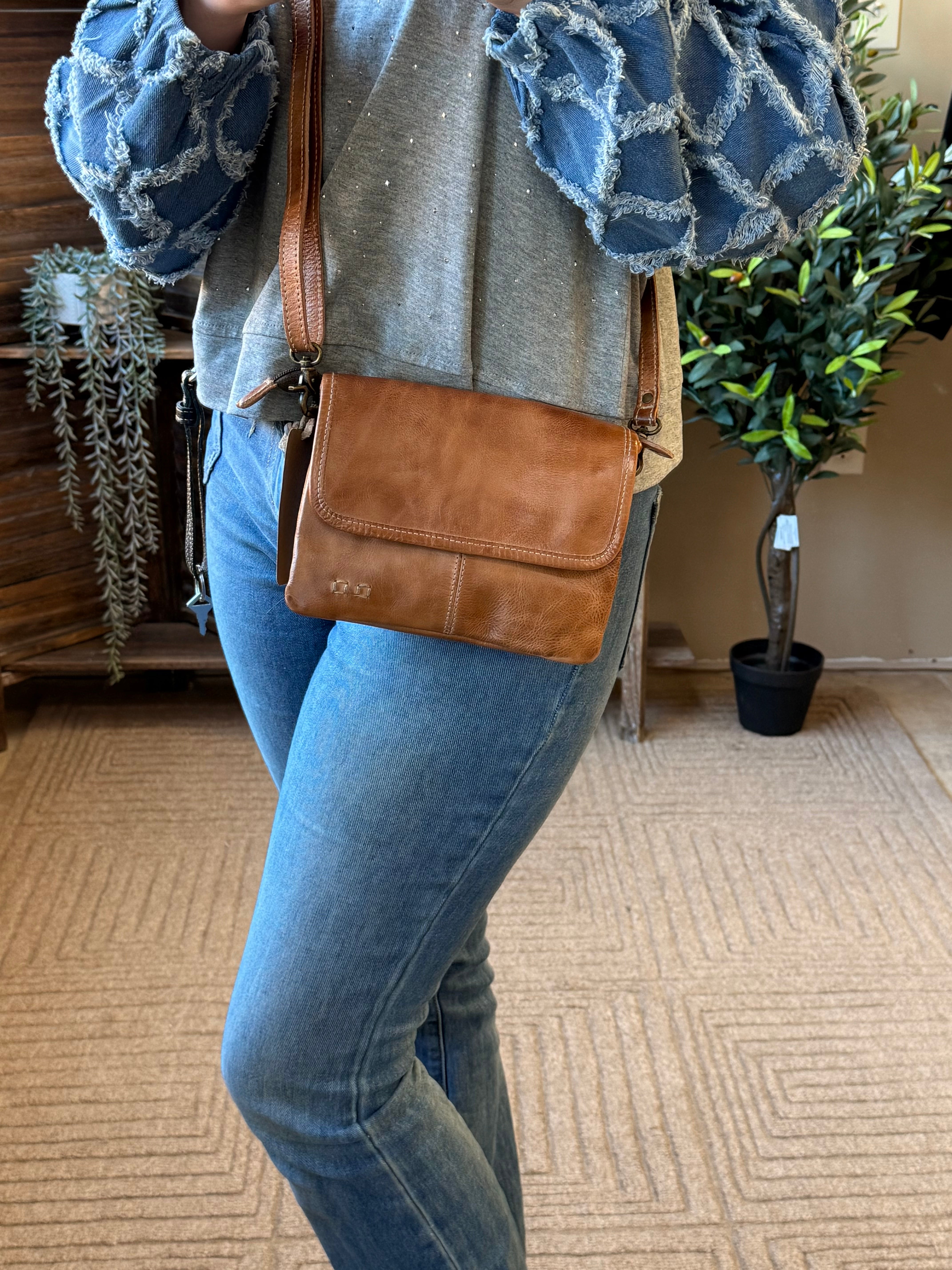 - 6 in. H, 8 in. W, 2 in. D, with removable & adjustable cross body or belt strap