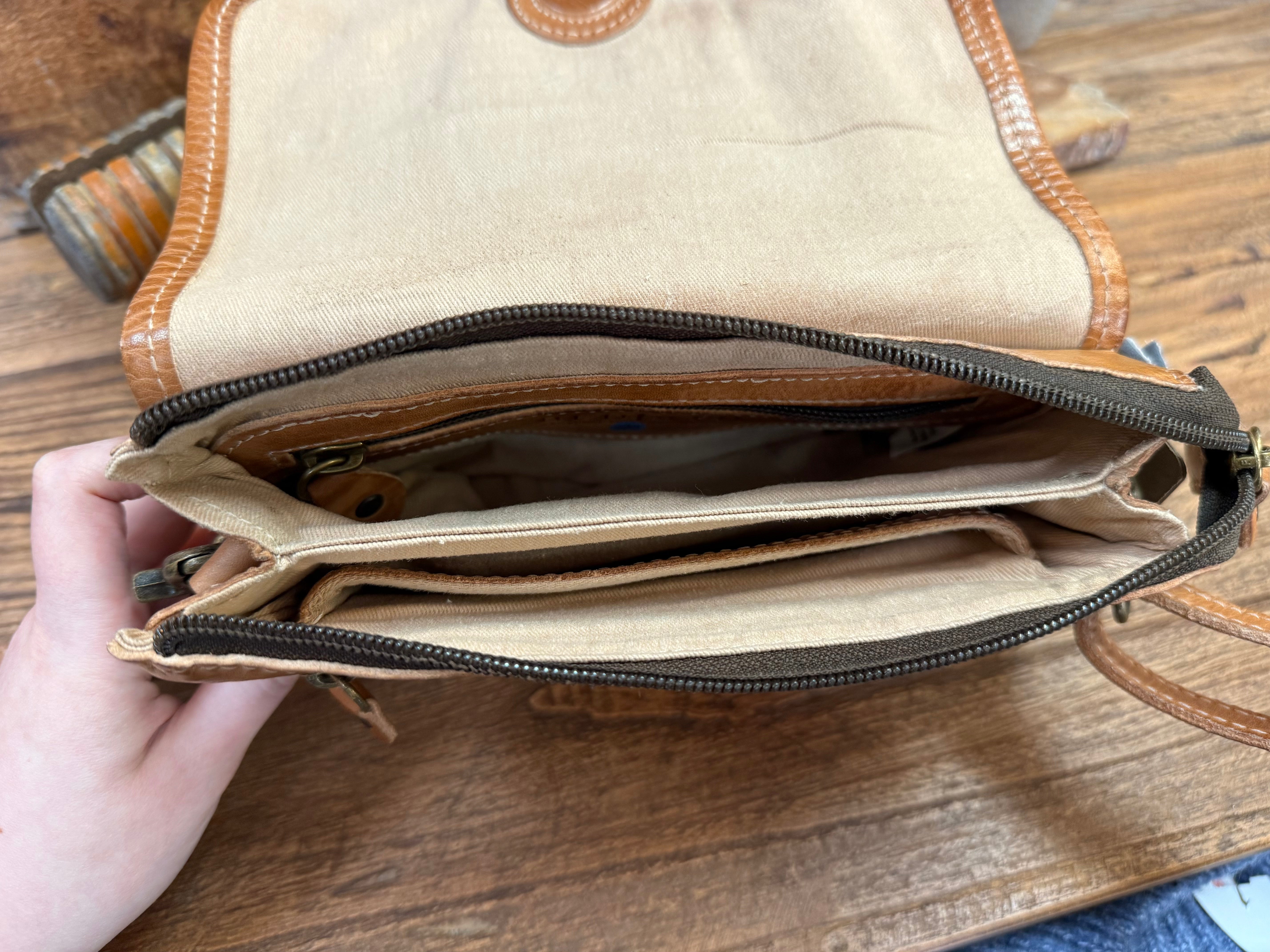 - Fabric lined, divider inside, 1 interior slip pocket, 1 zippered