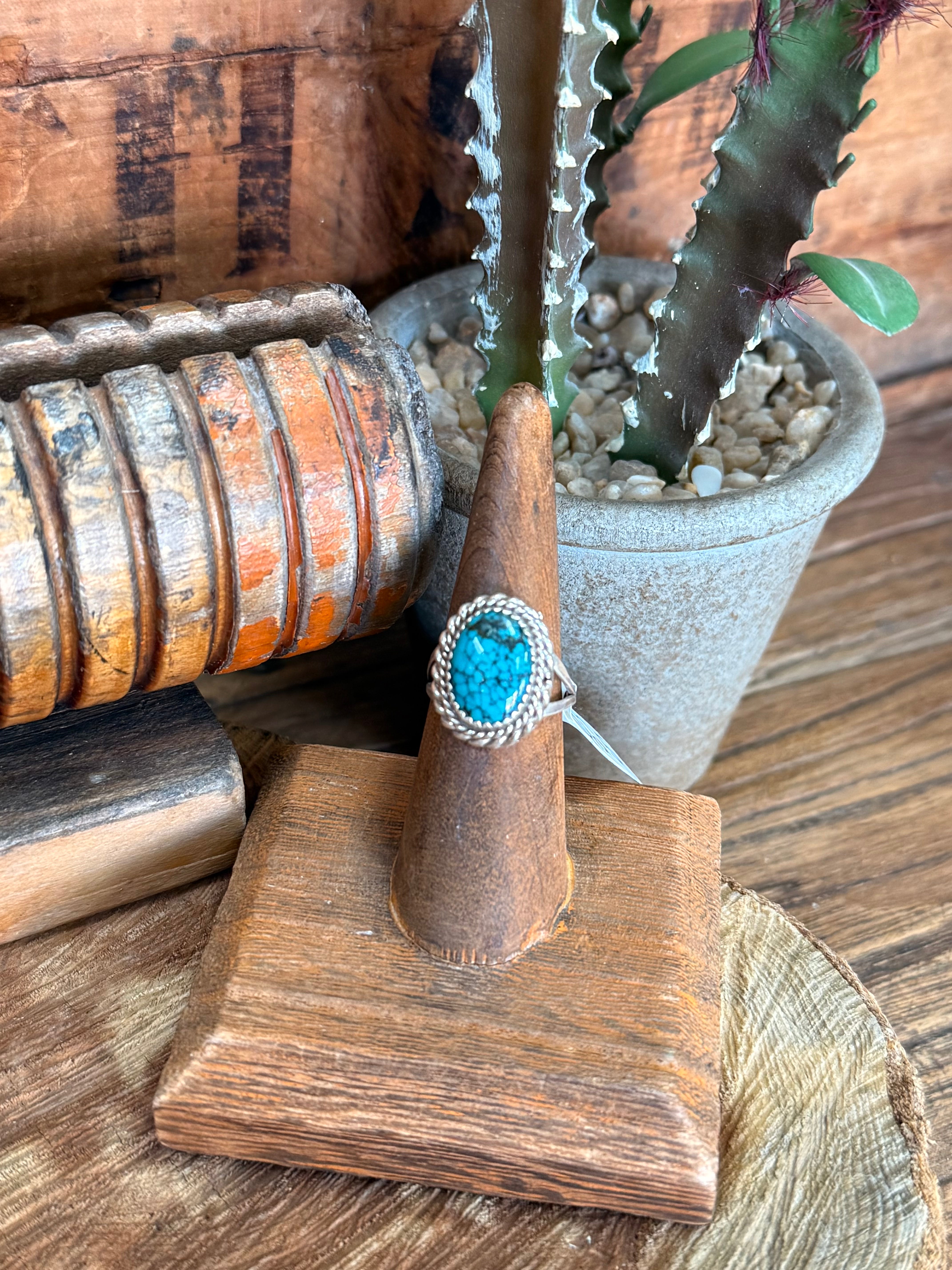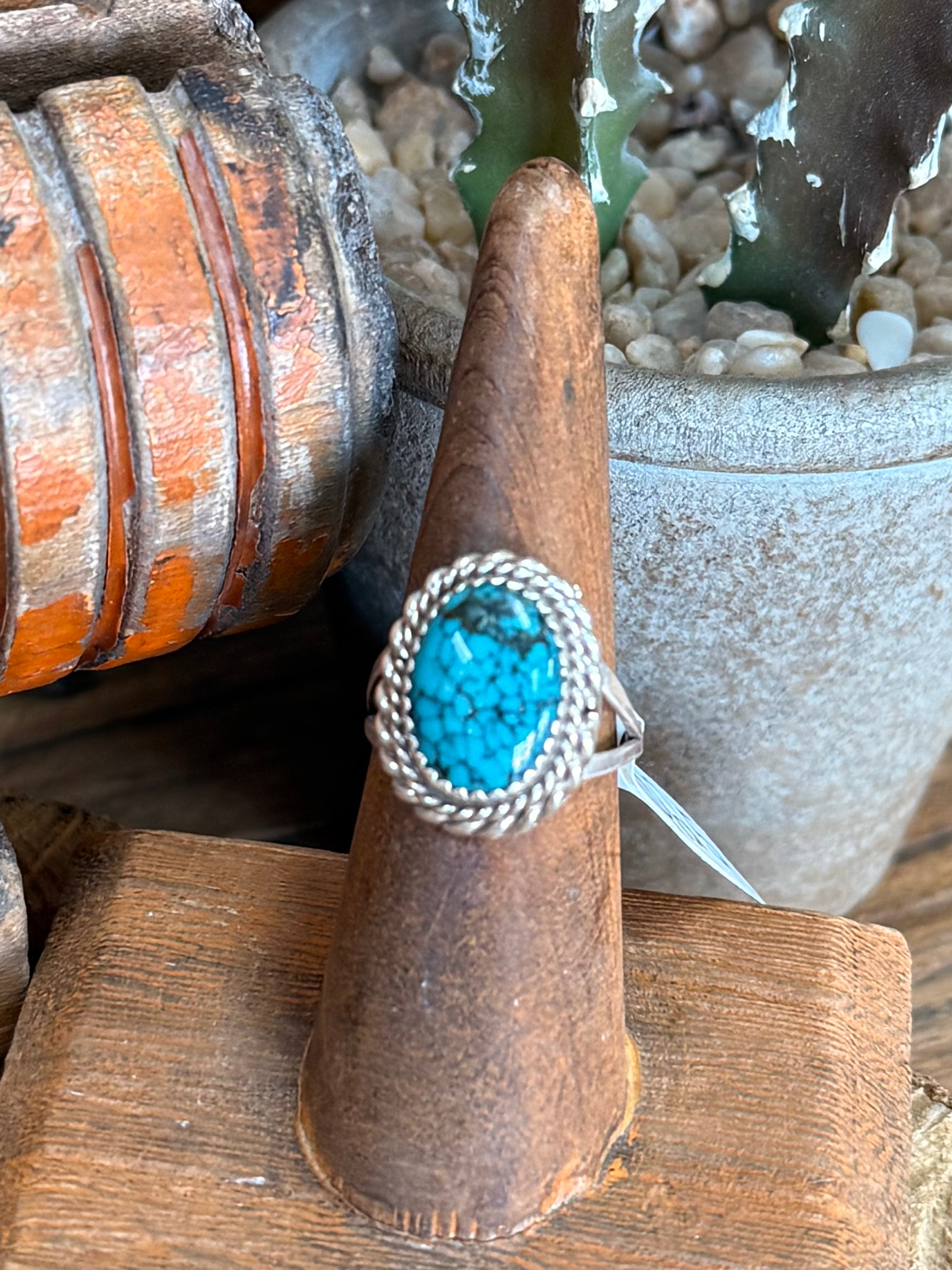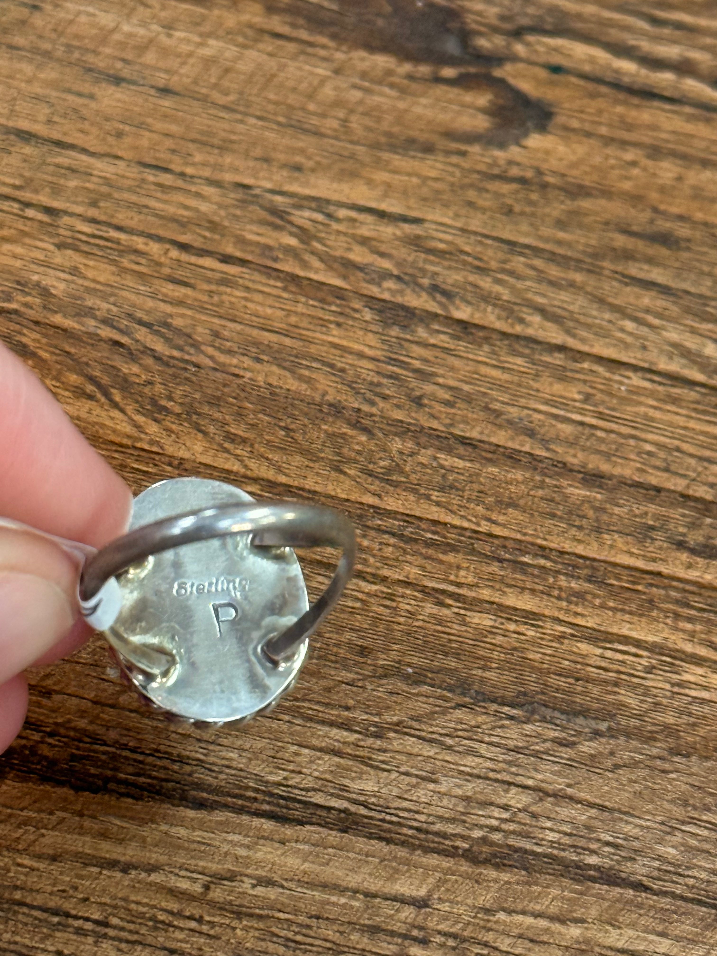 Native Made Spiderweb Turquoise Sterling Silver Ring - 7