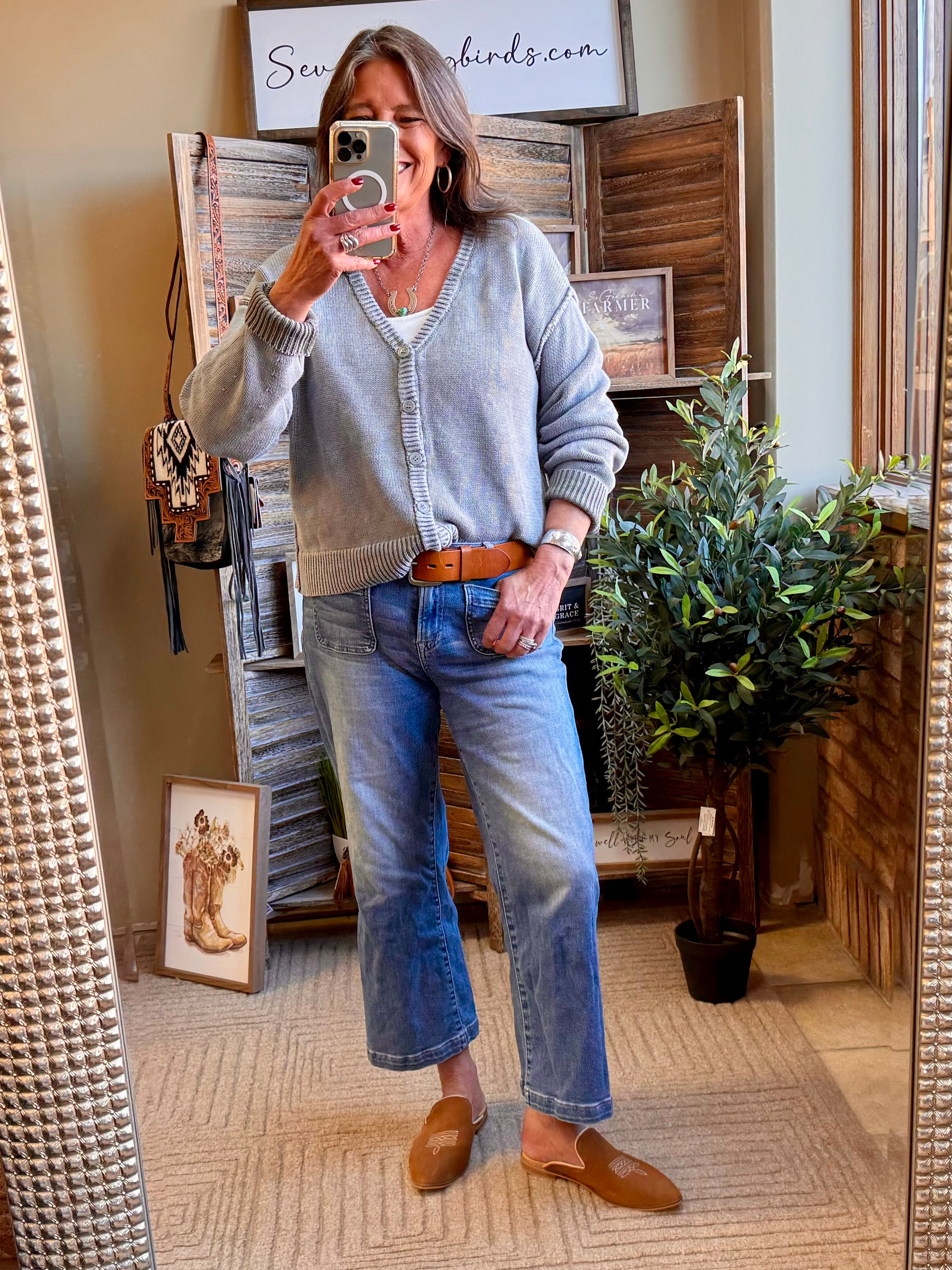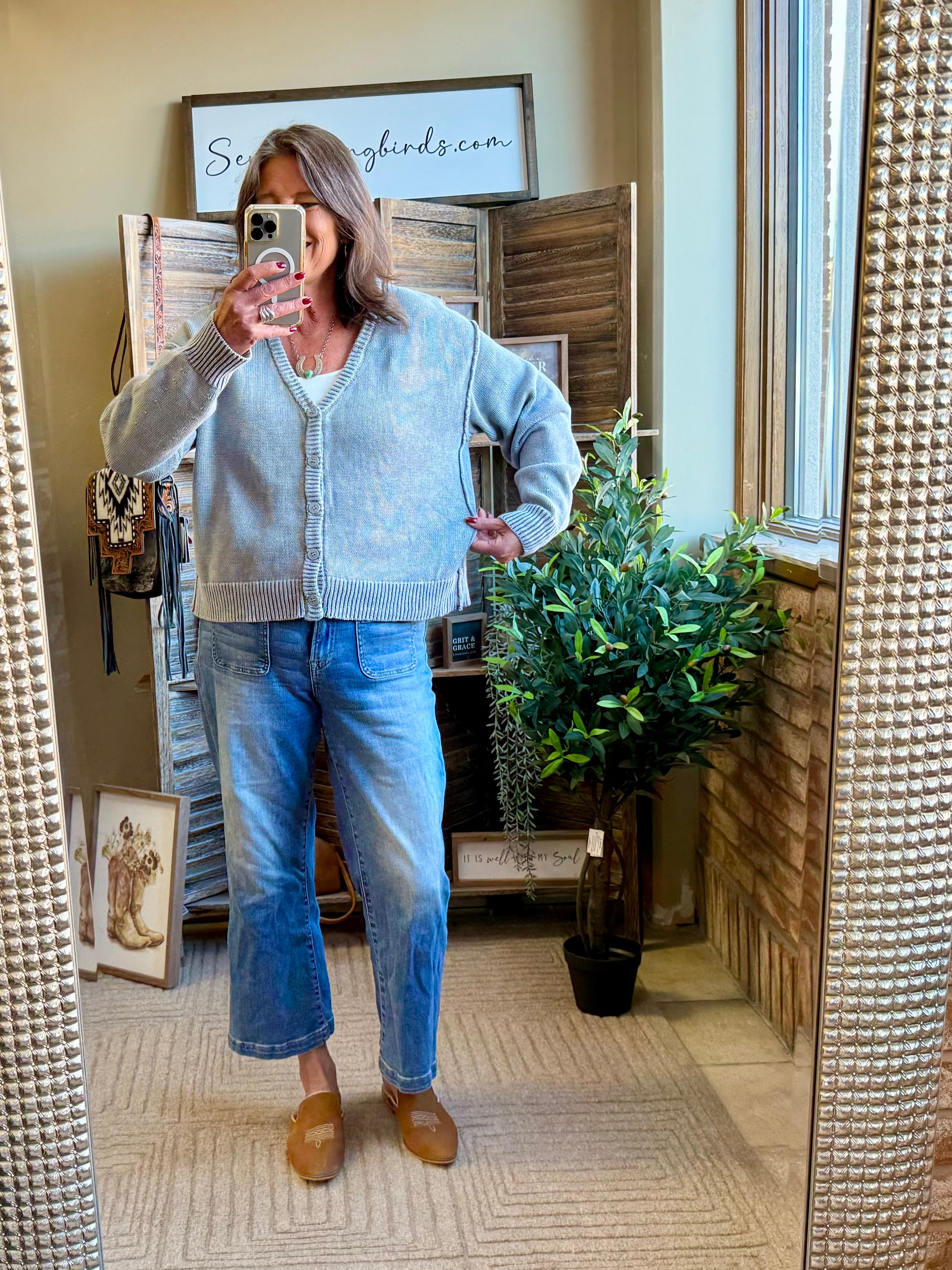 This Olive Mineral Washed Cotton Cardigan offers a lightweight, breathable layer with a soft mineral-washed finish for a comfortably worn-in feel. Designed with an oversized fit, it drapes casually while maintaining style versatility. For a closer, more tailored look, sizing down one or two sizes is recommended. Crafted from pure cotton, this cardigan ensures natural breathability and ease of wear, making it an ideal piece for layering in transitional seasons.
