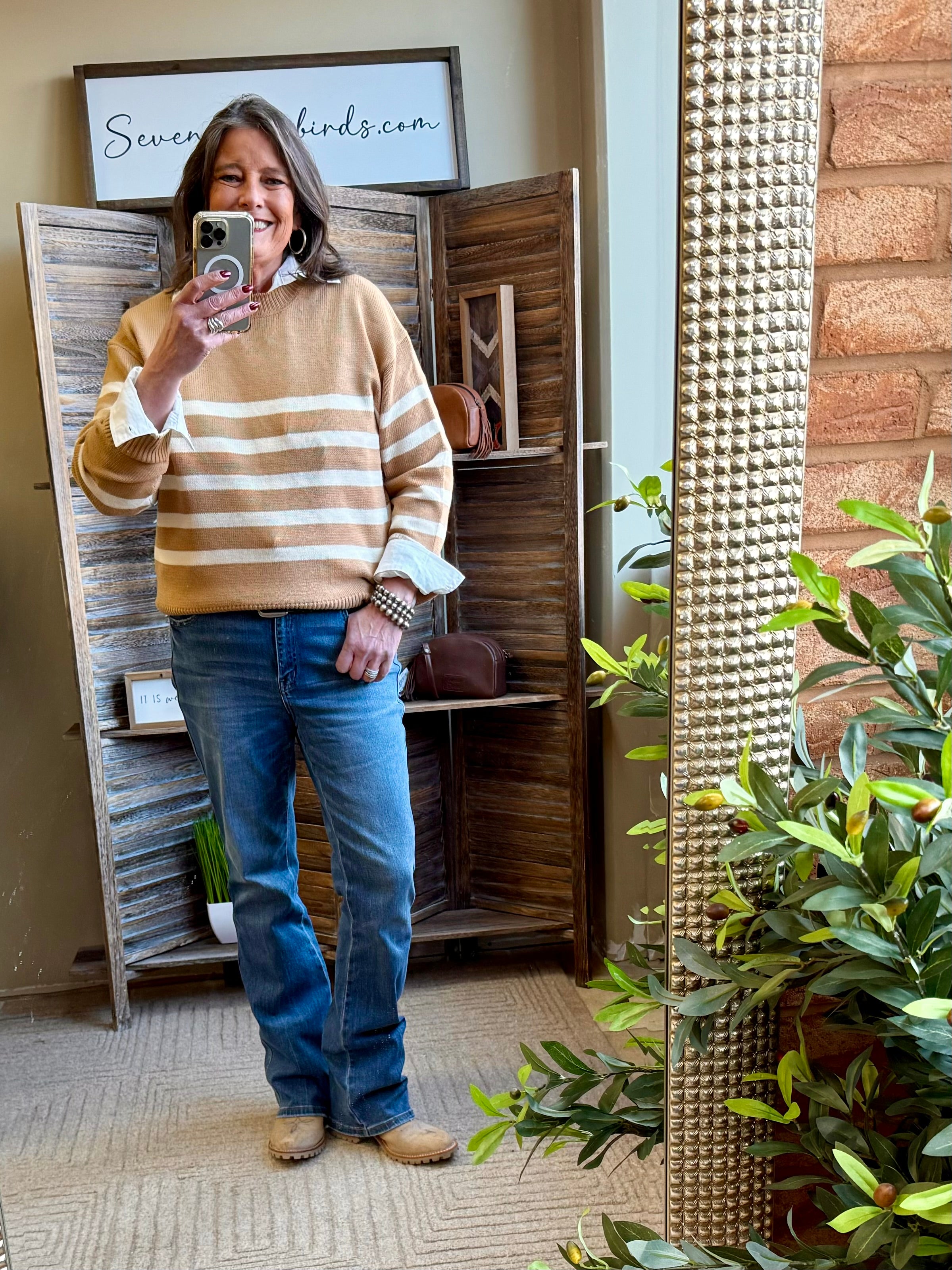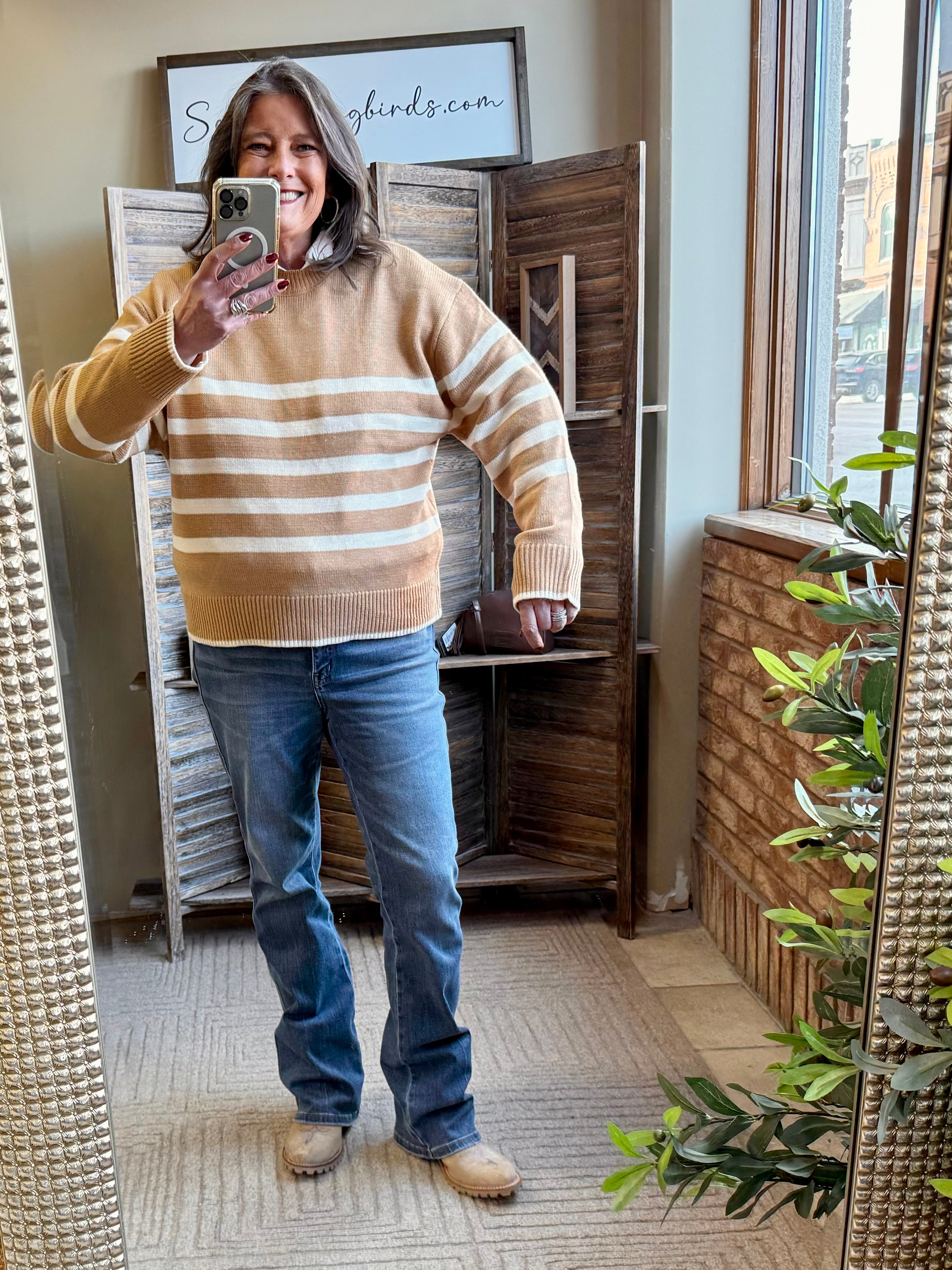 Tan Striped Crew Neck Sweater