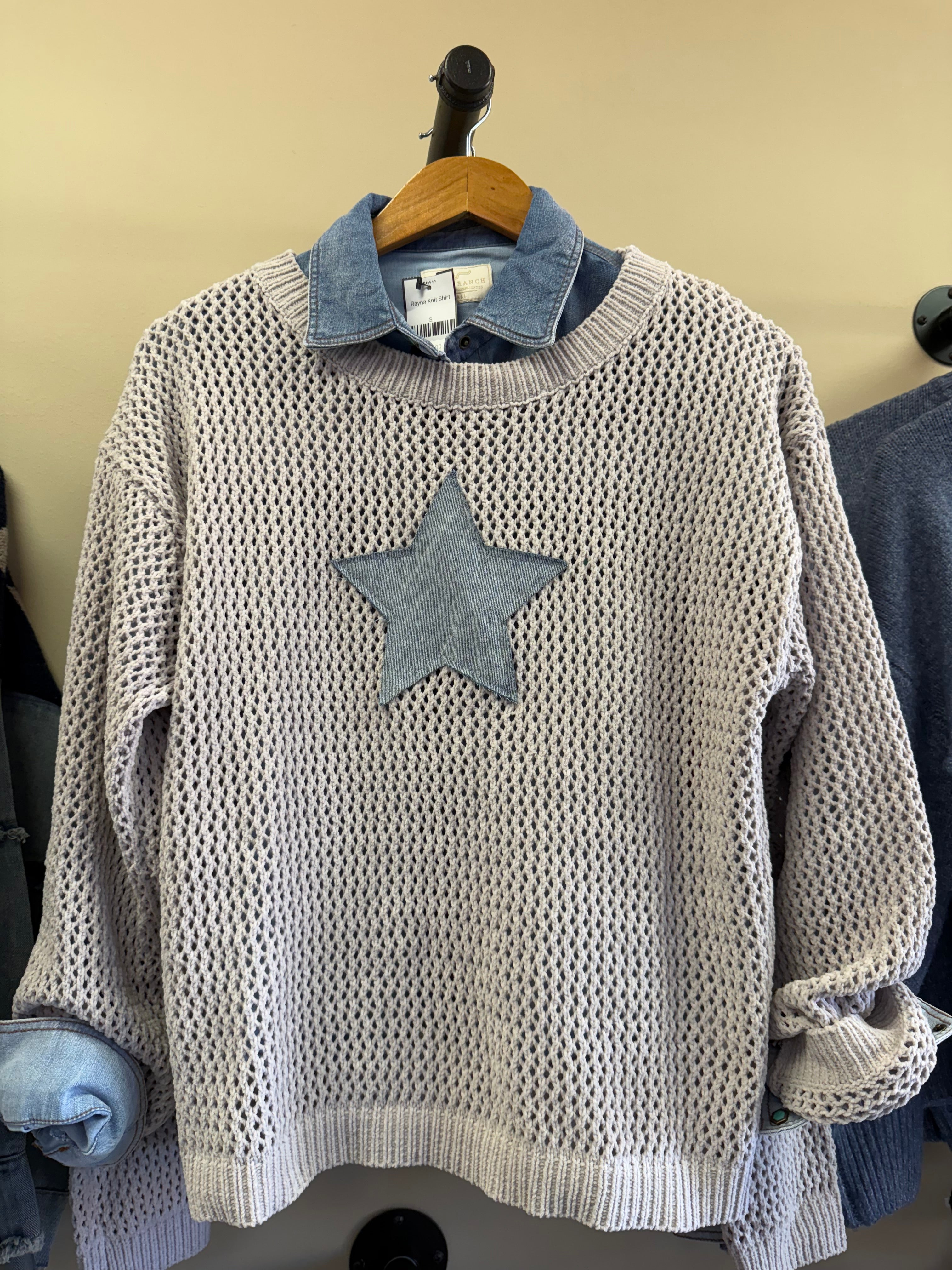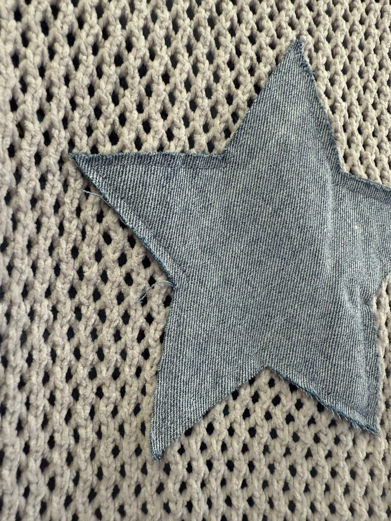 Applique Star Open Knit Sweater