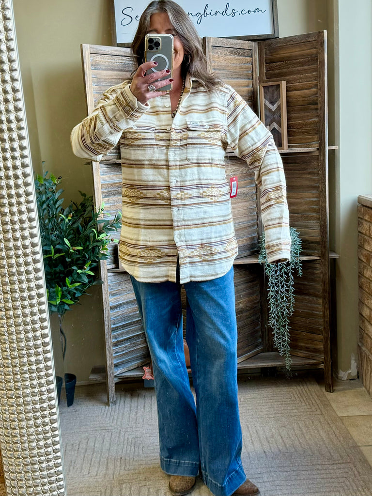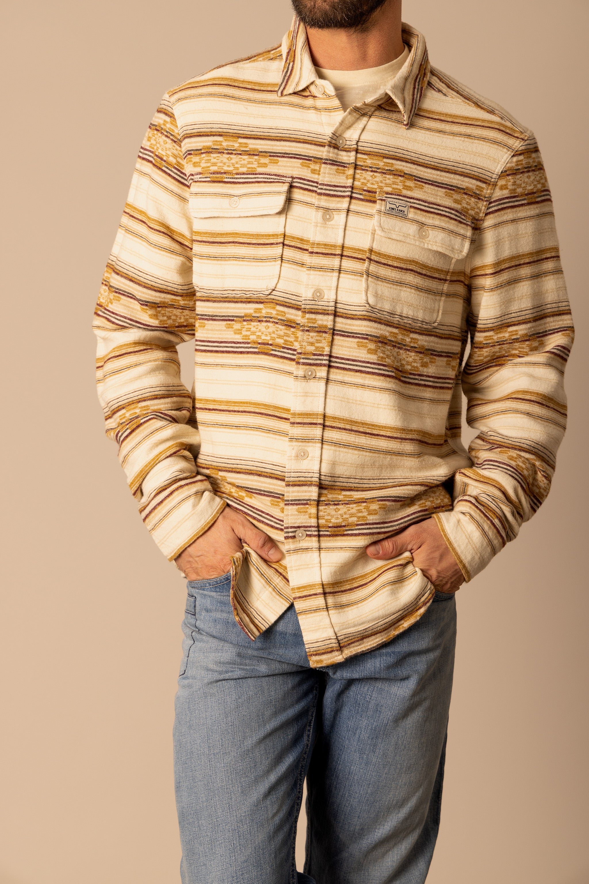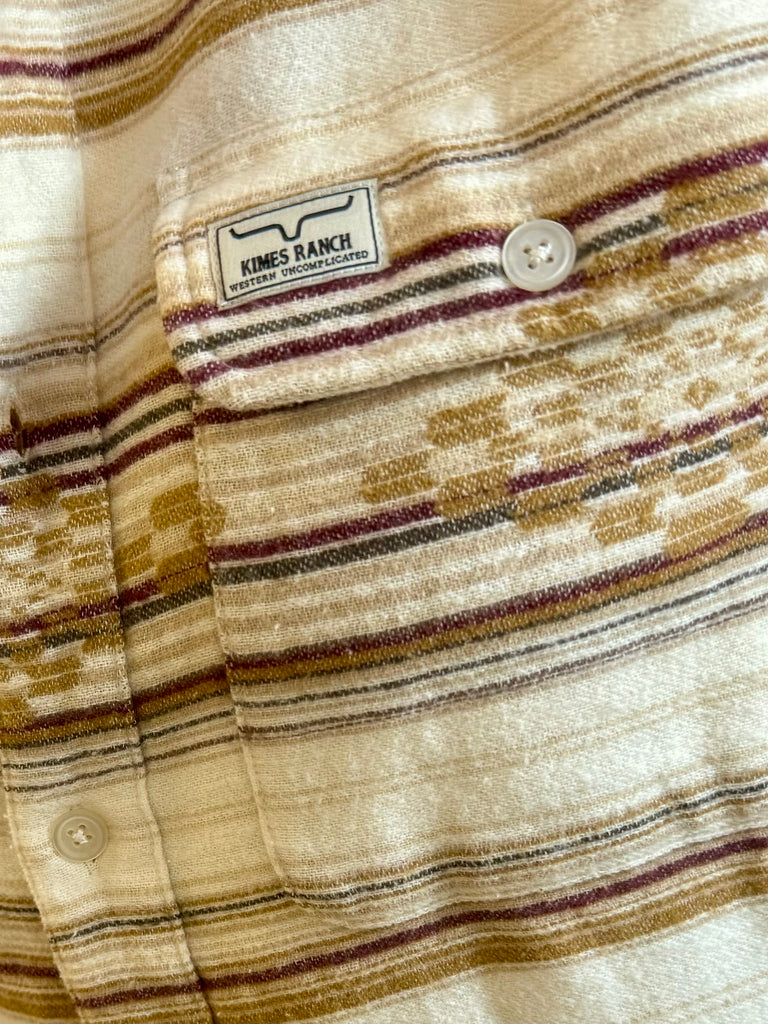 Muted colors in what we used to call a 'chamois' shirt back in the day. Thicker weight, no stretch.