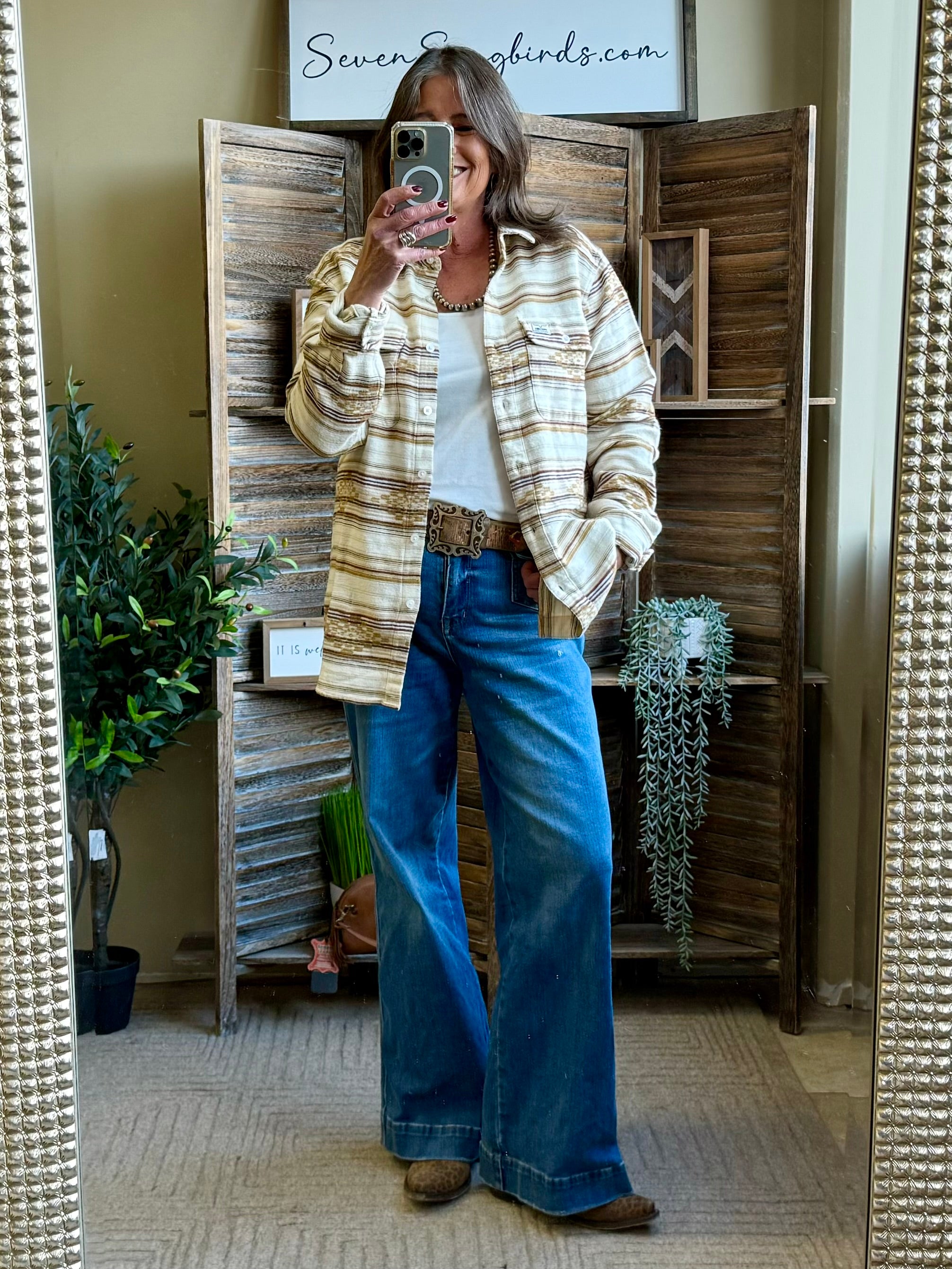 Fit: Technically a mens shirt. I love these worn open as a shacket. I sized down 1 to the medium - generally a large in a unisex fit graphic t shirt. 5'8"