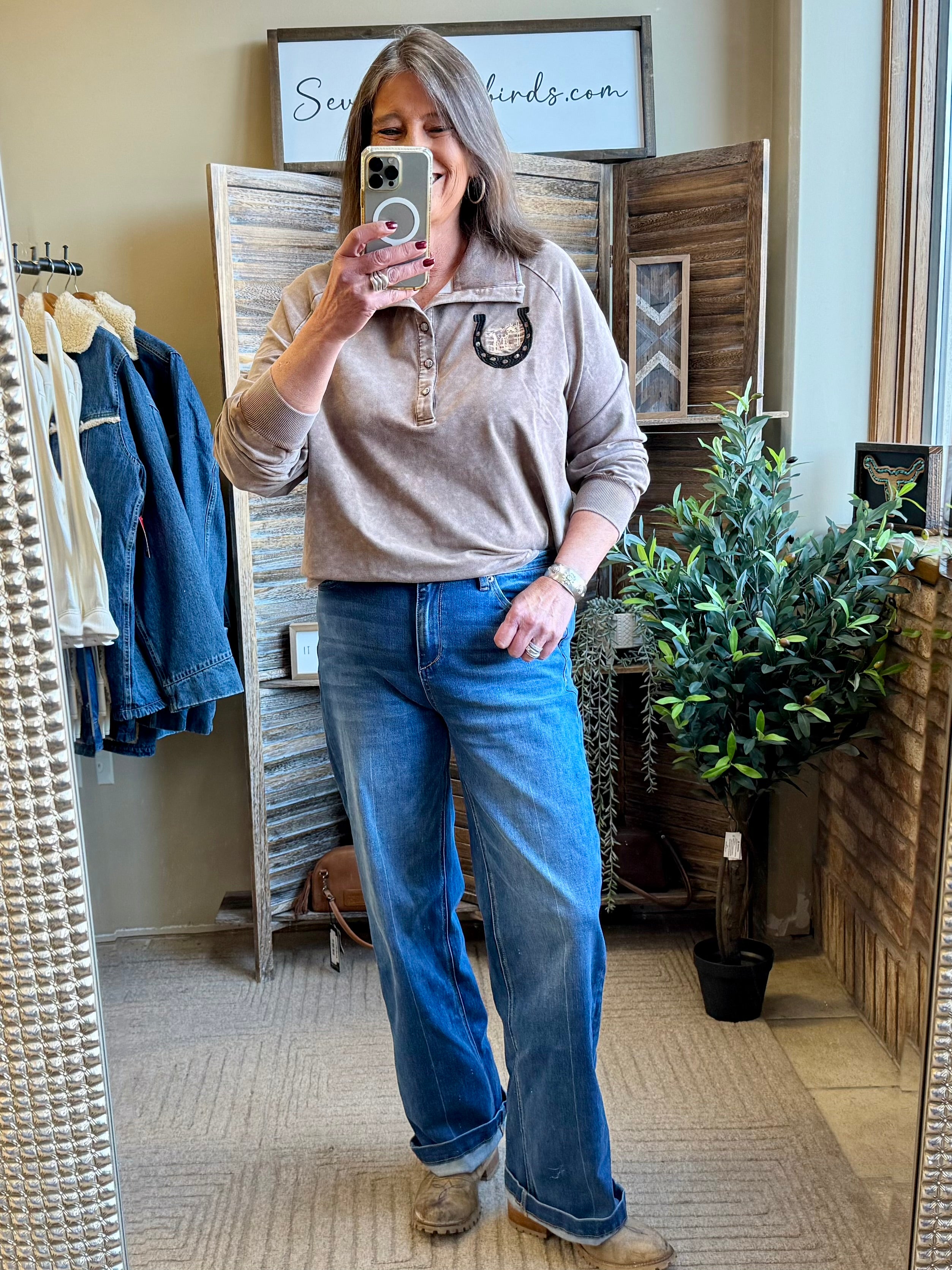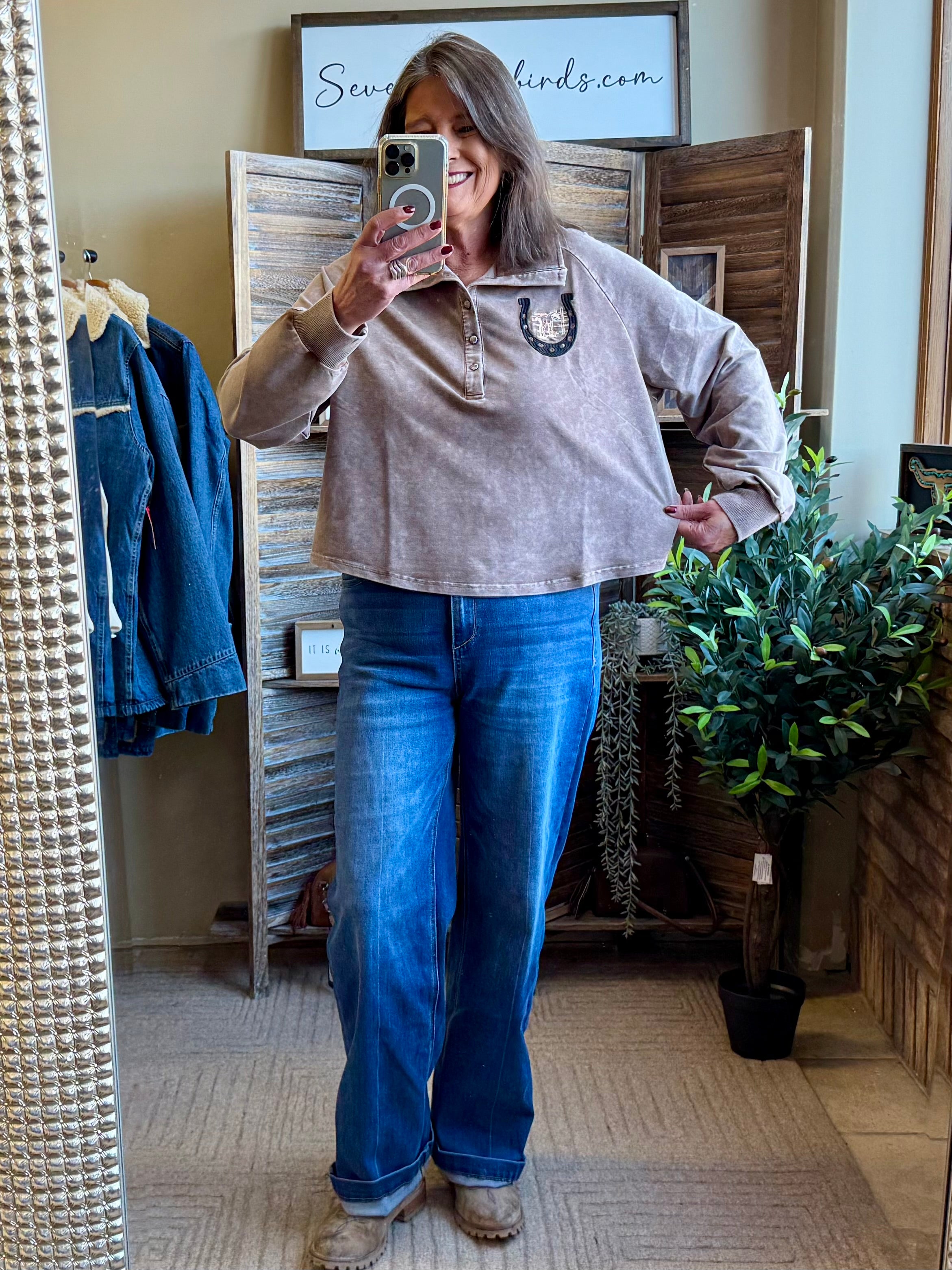 Chocolate Embroidered Horse Shoe Sweatshirt