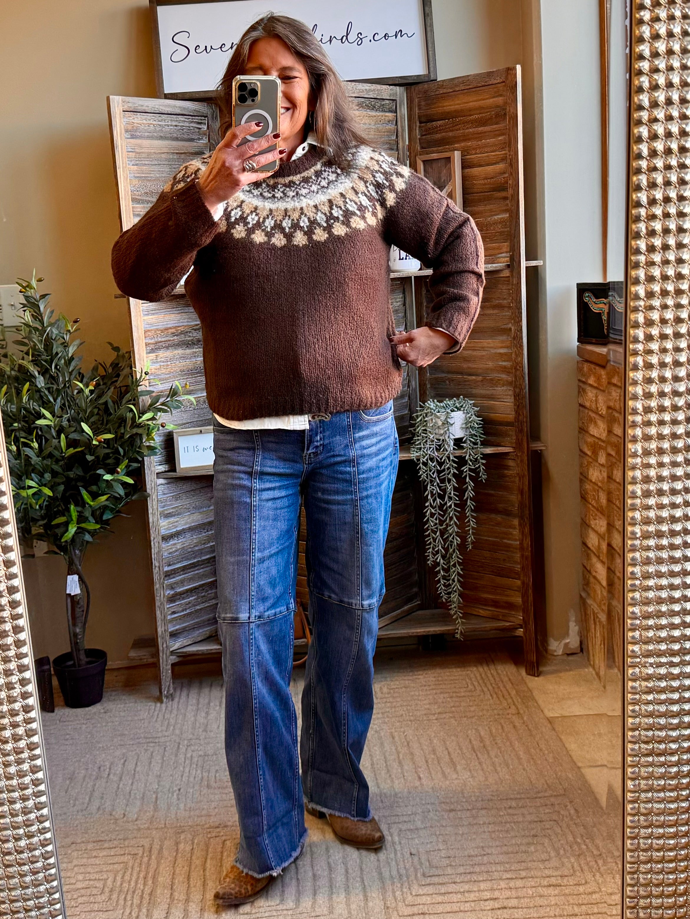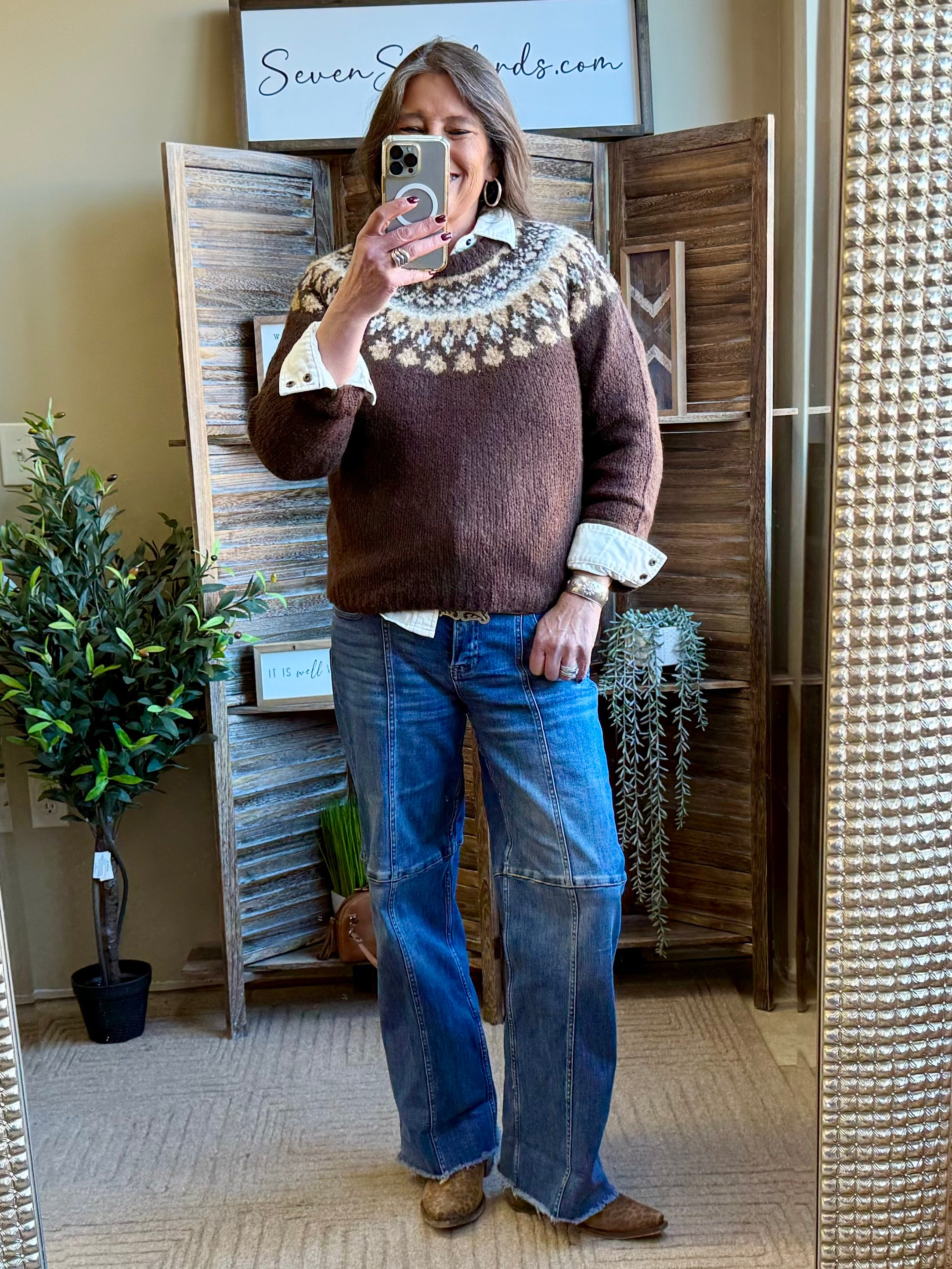 Soft and fuzzy feel in a lighterweight crew neck sweater.