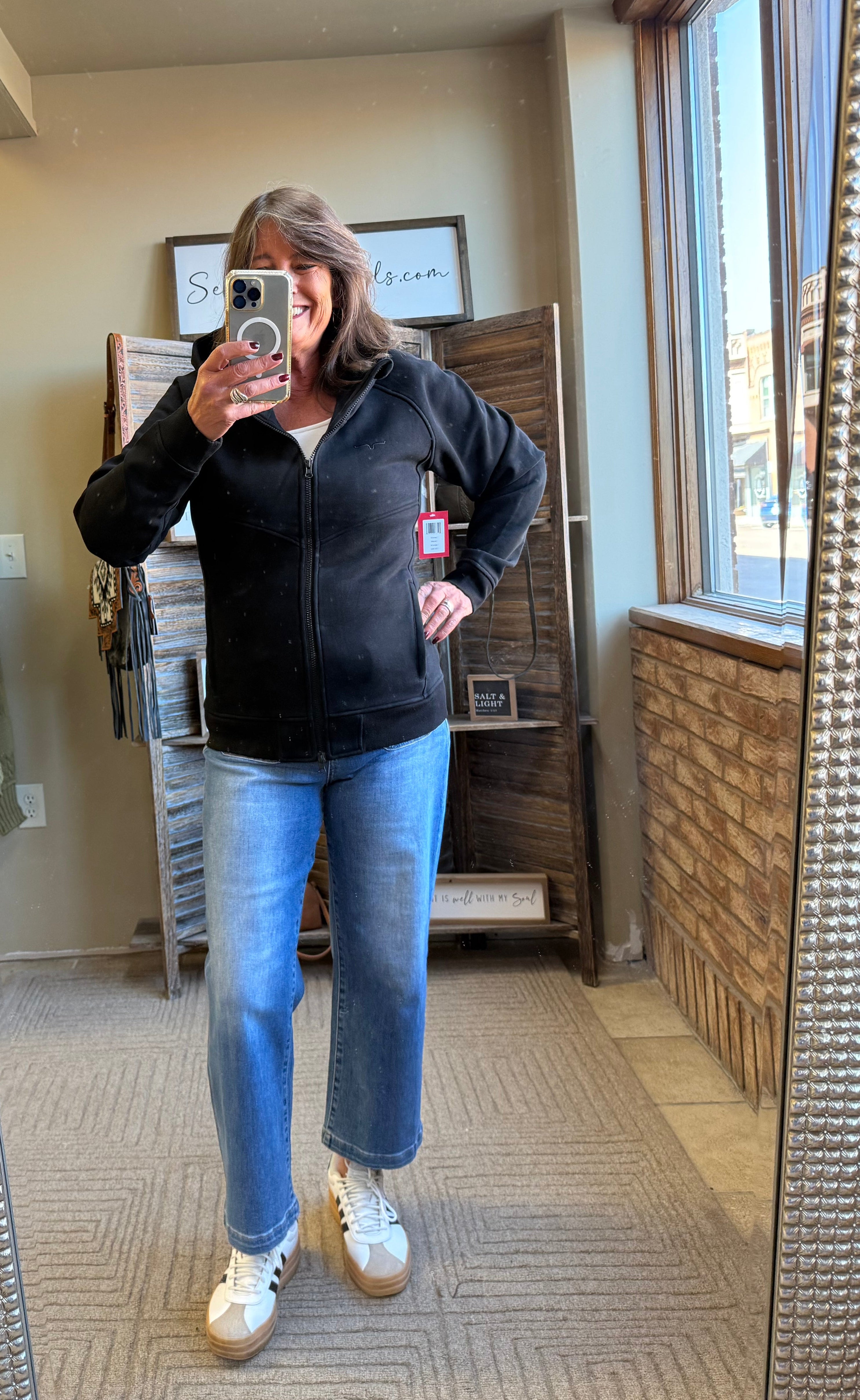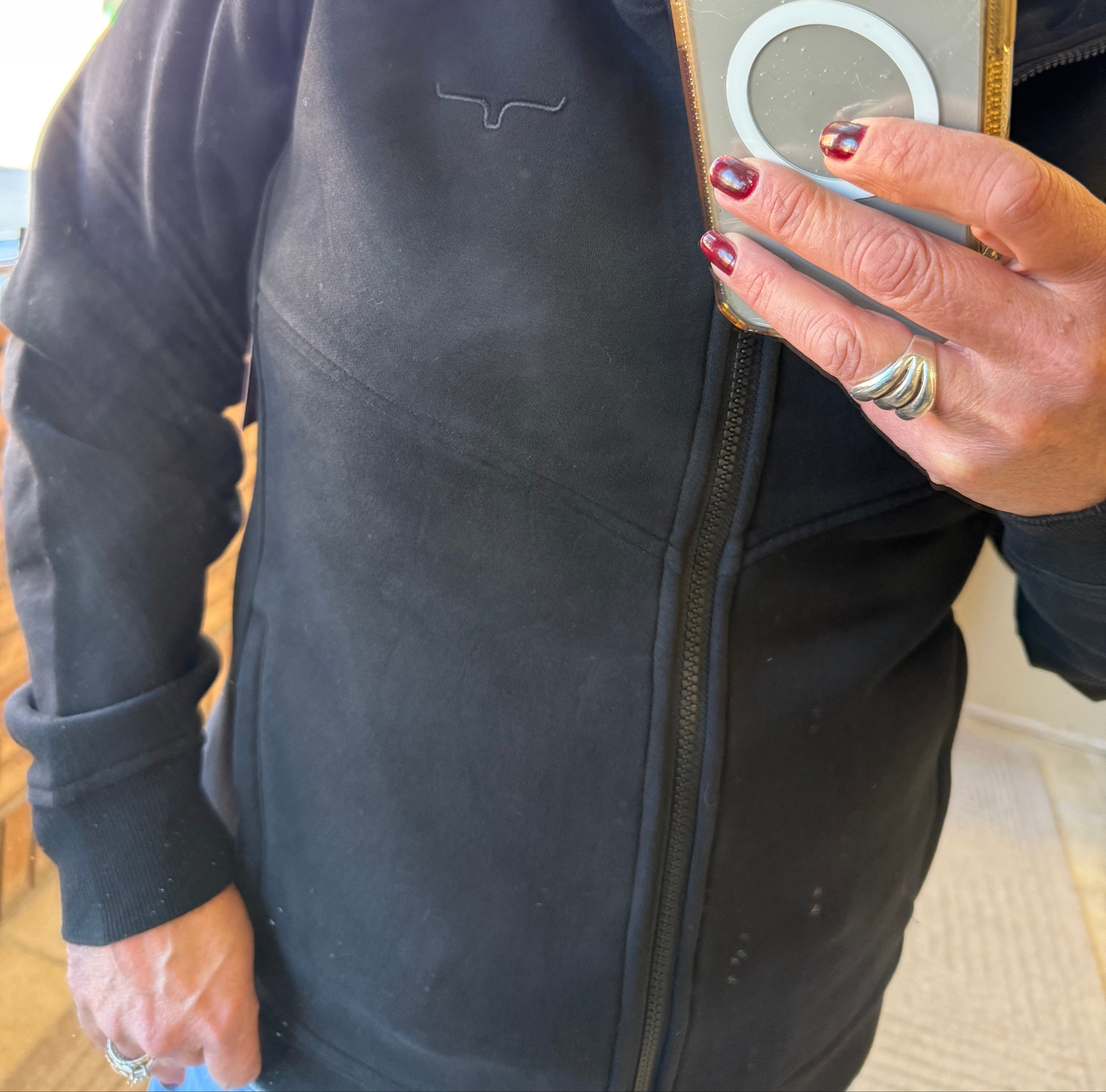 Emma Black Zip Front Hoodie Sweatshirt
