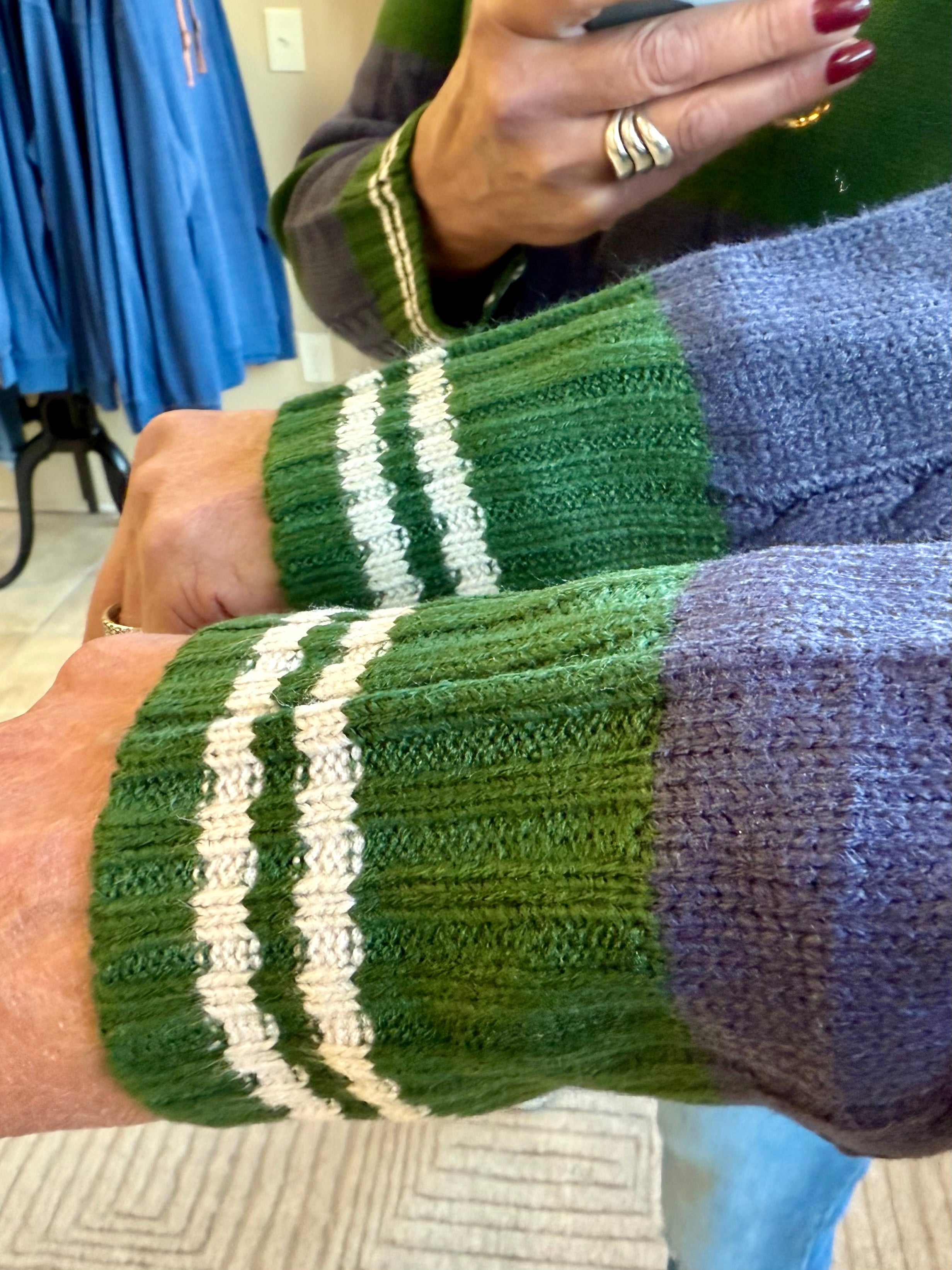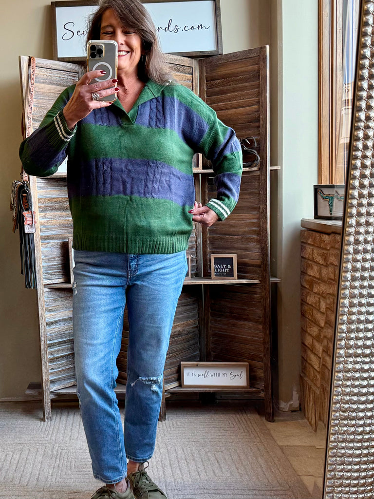 Navy Green Rugby Polo Sweater