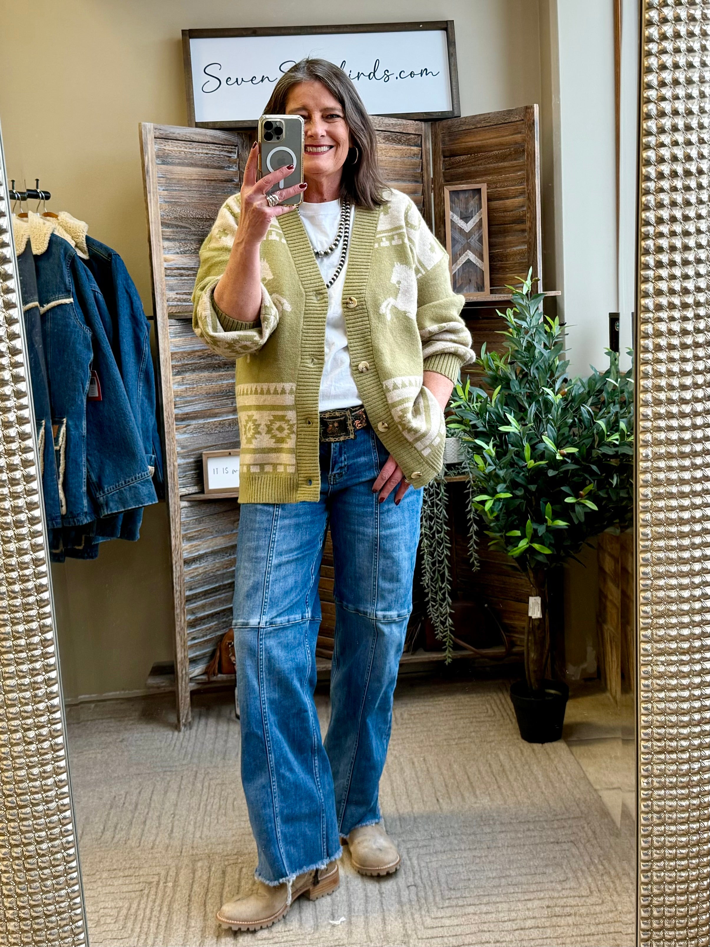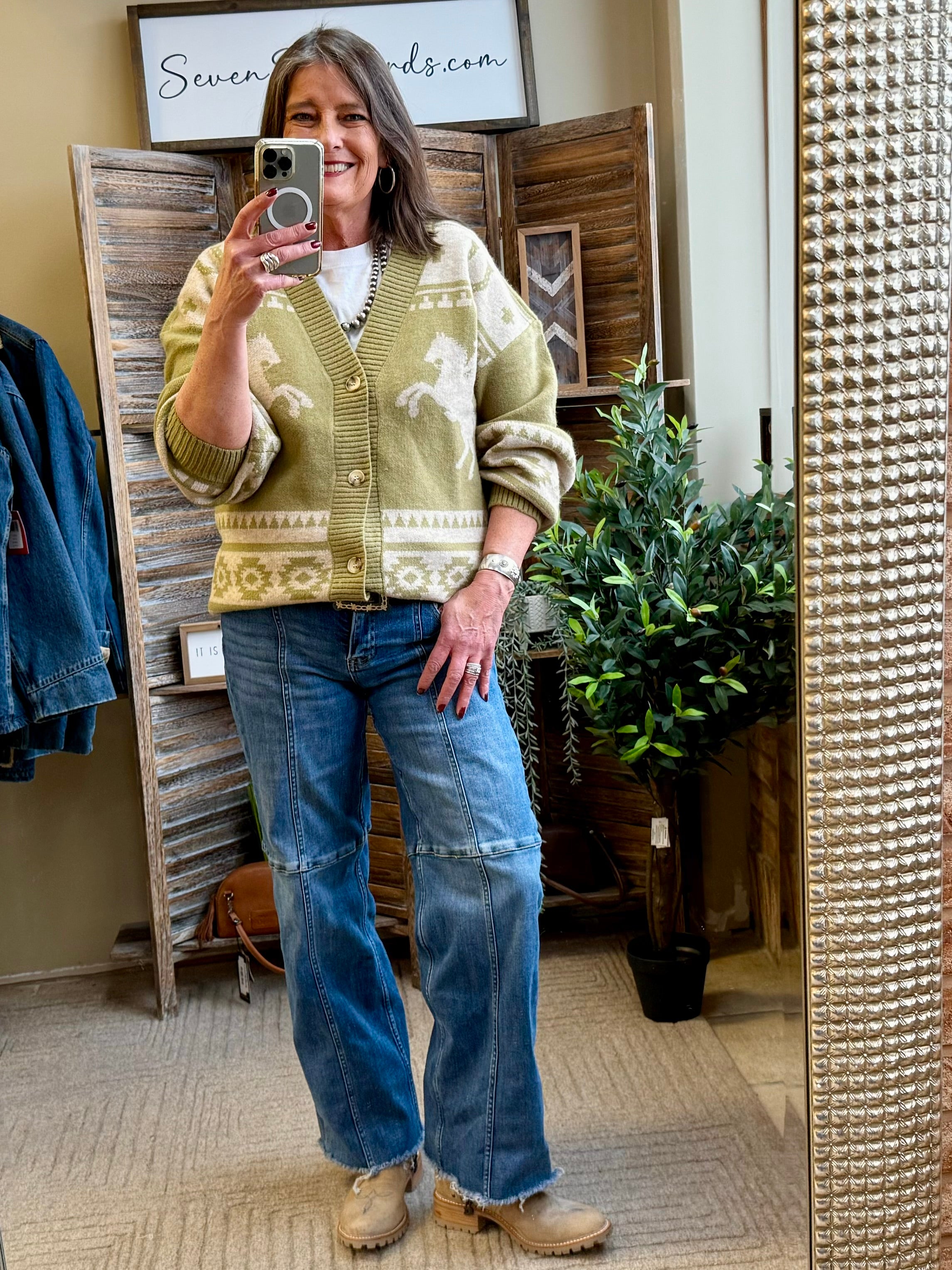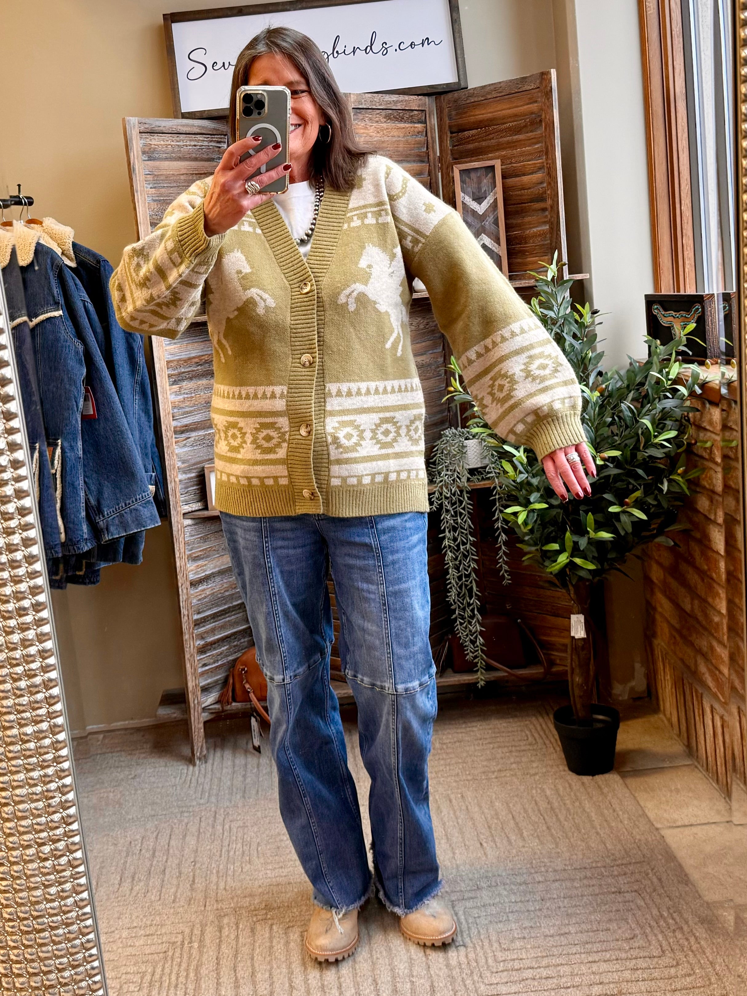 Olive Horse Print Cardigan