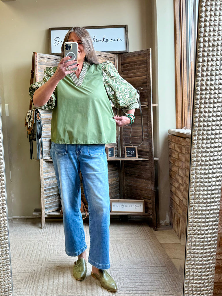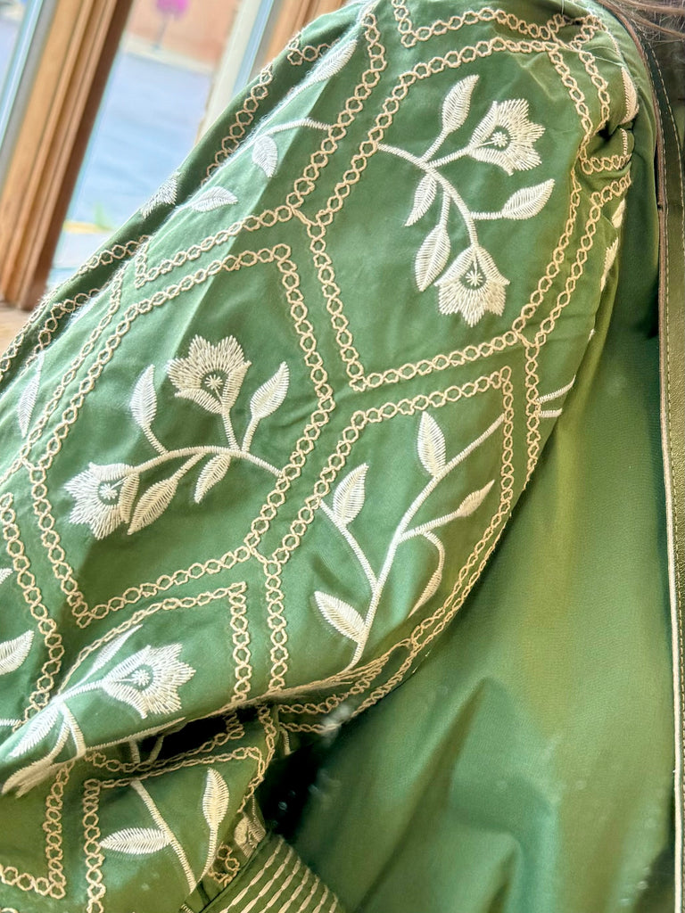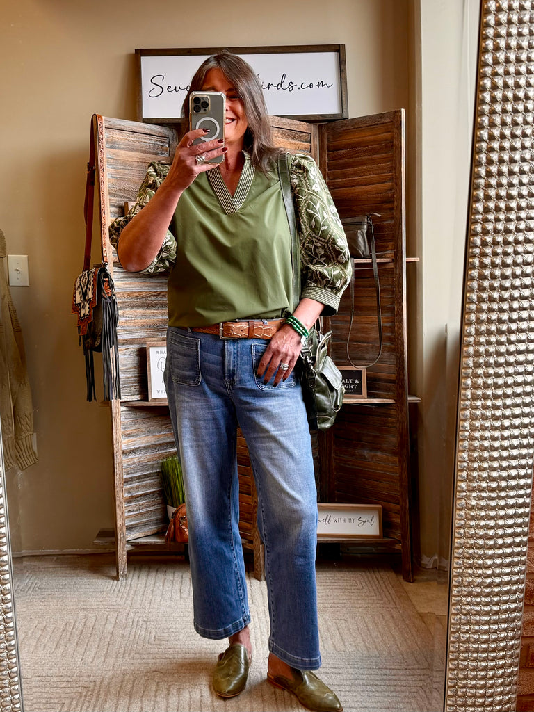 Olive Embroidered Sleeve Shirt