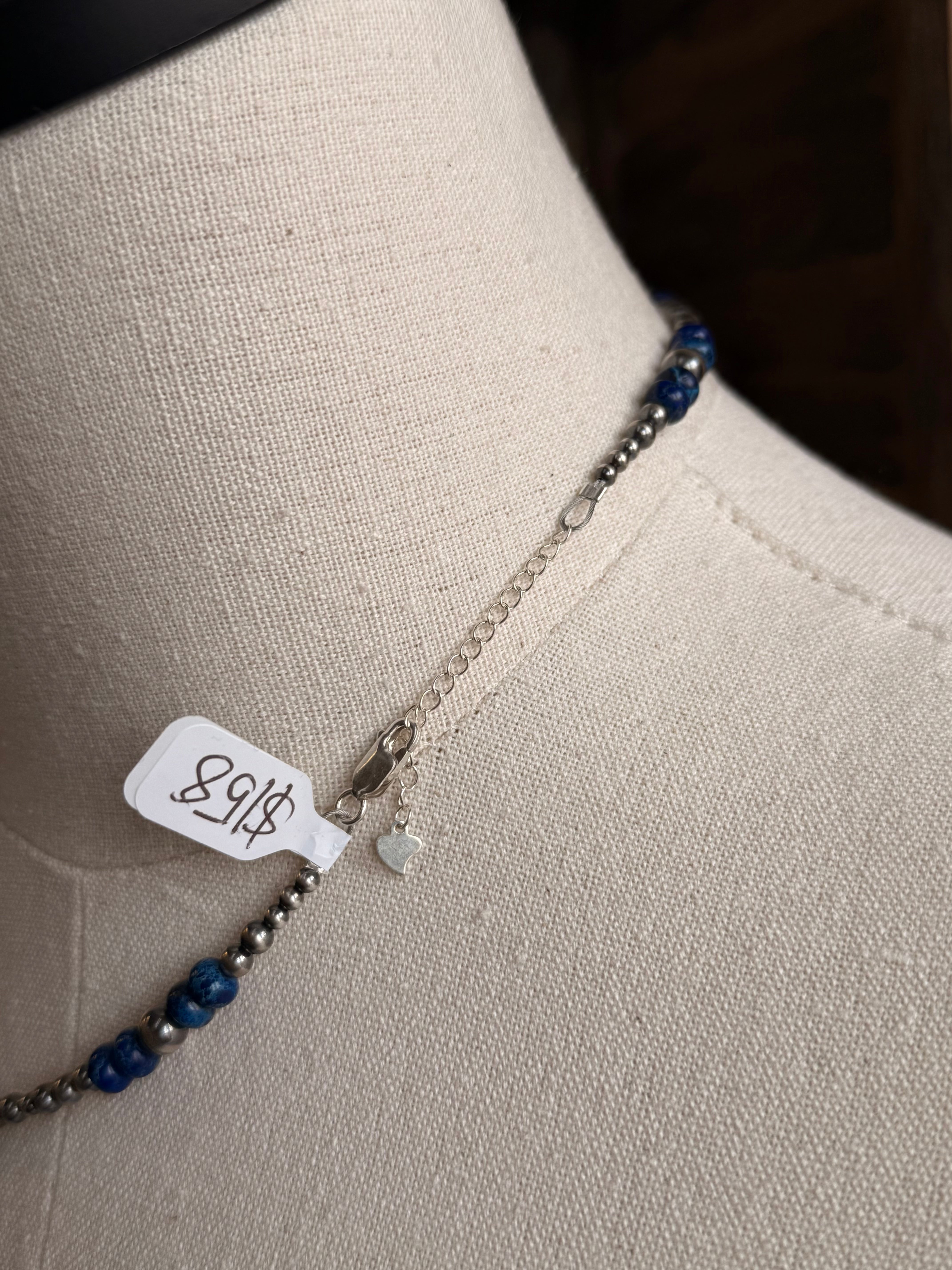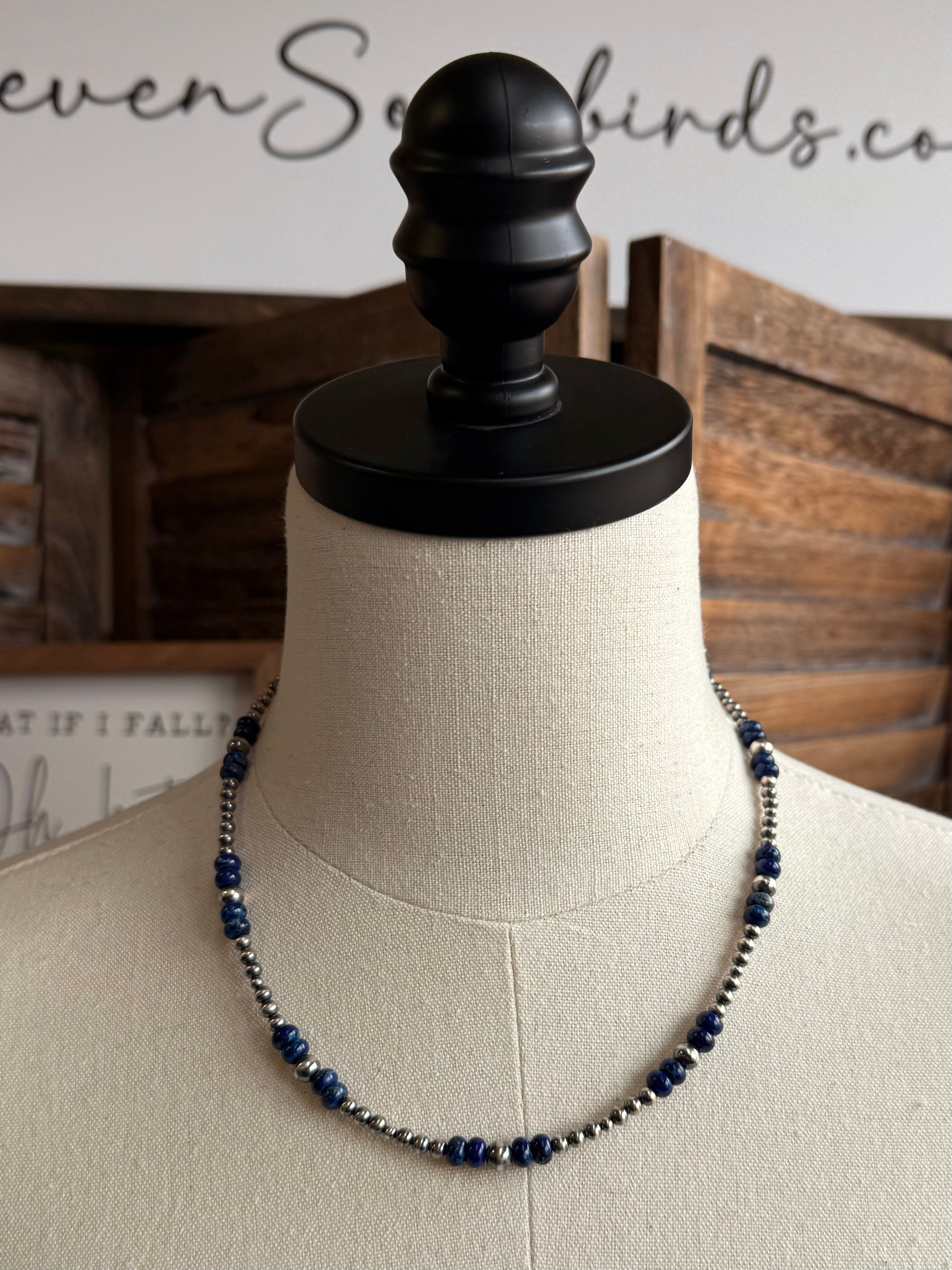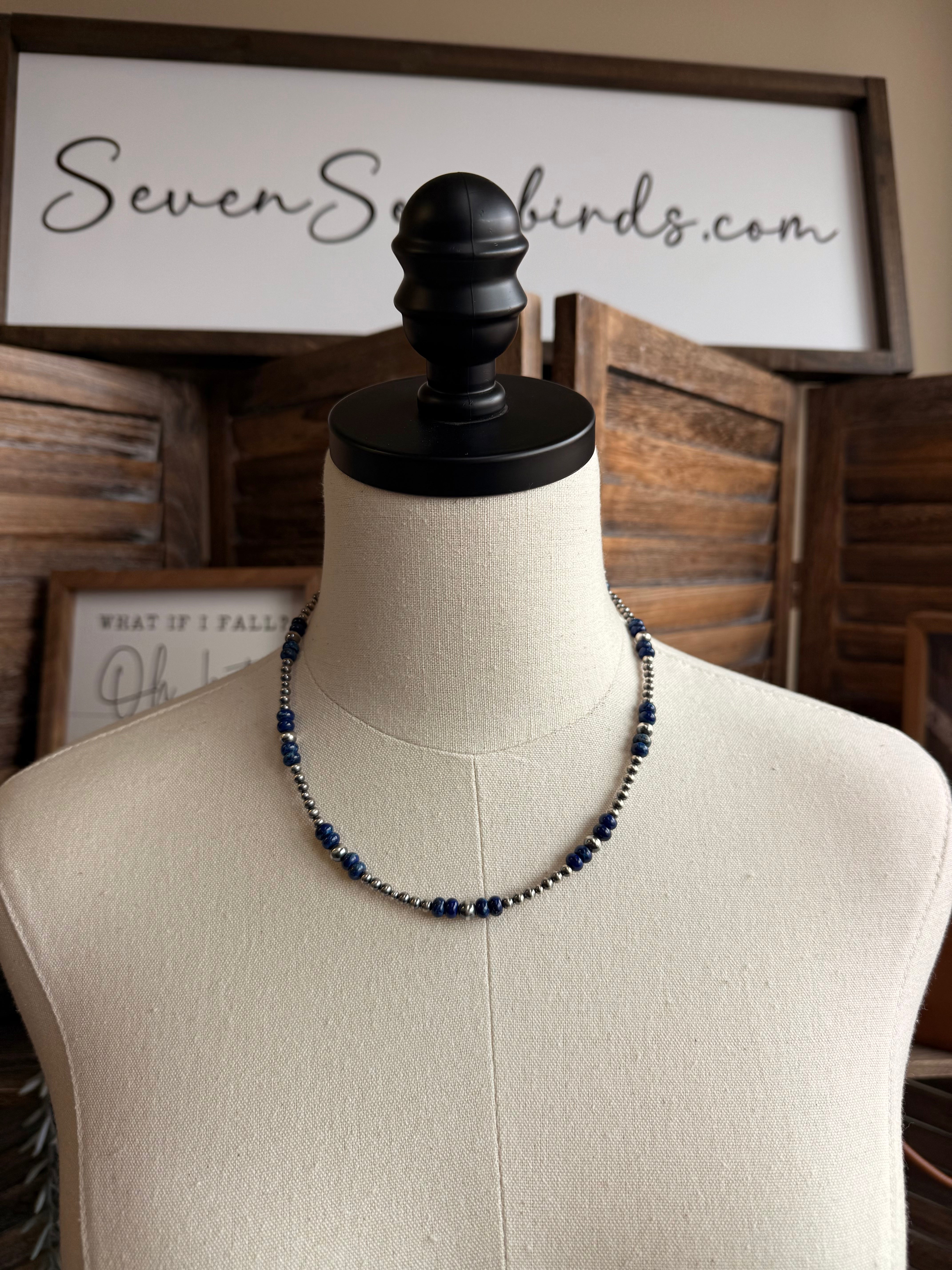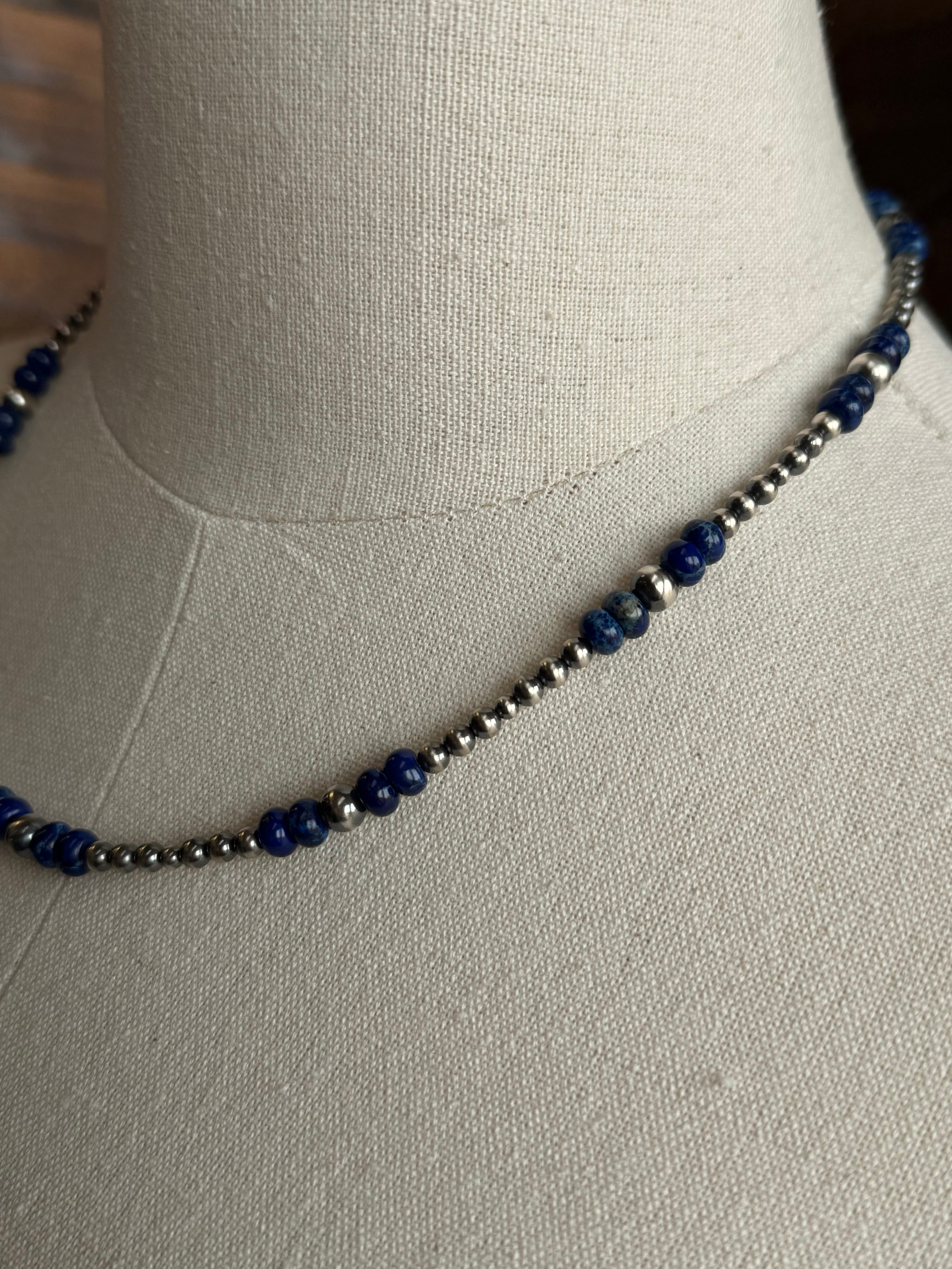 17" Blue Jasper and Sterling Pearl Necklace