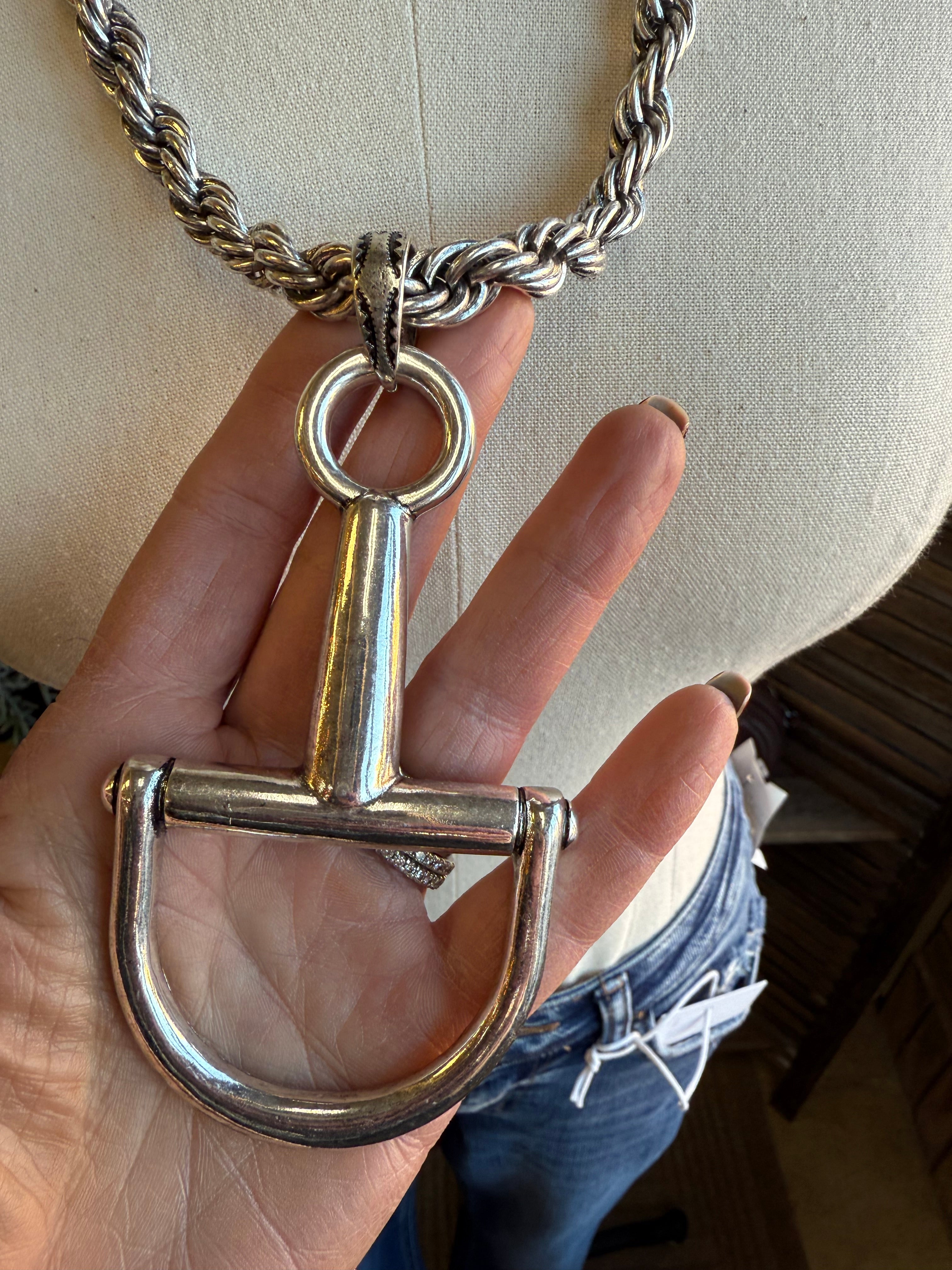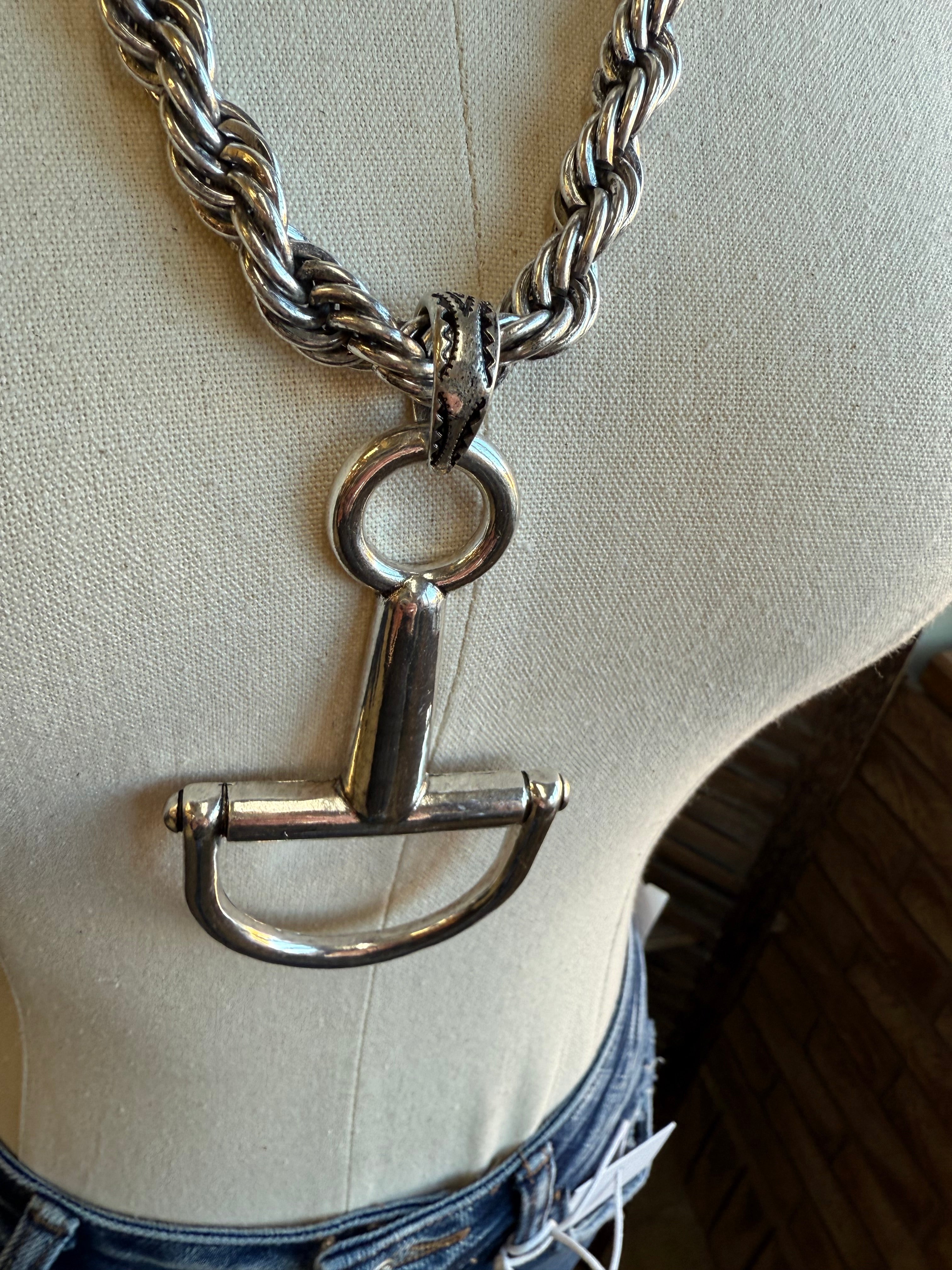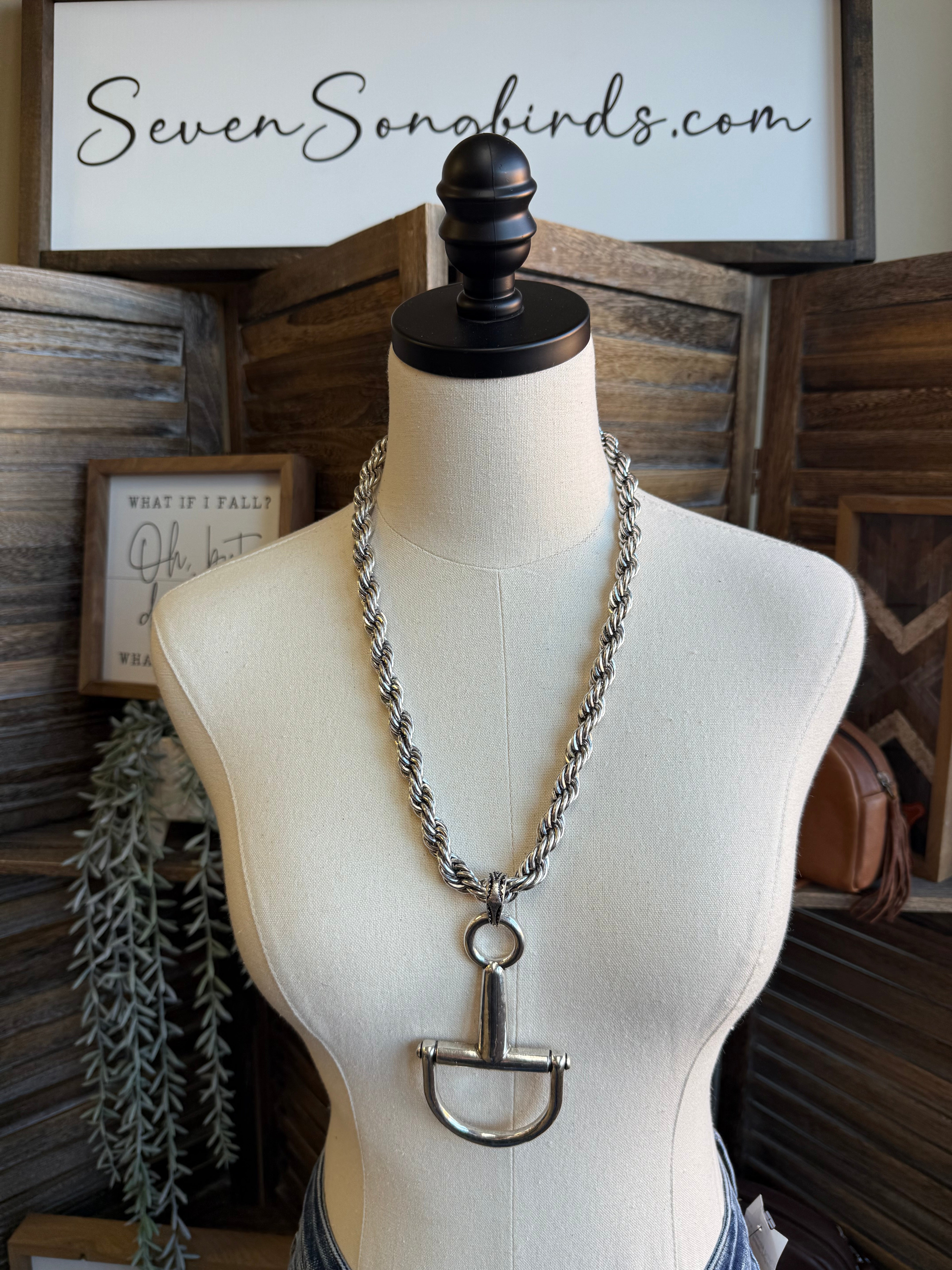 Silver Snaffle Bit Braided Chain Necklace
